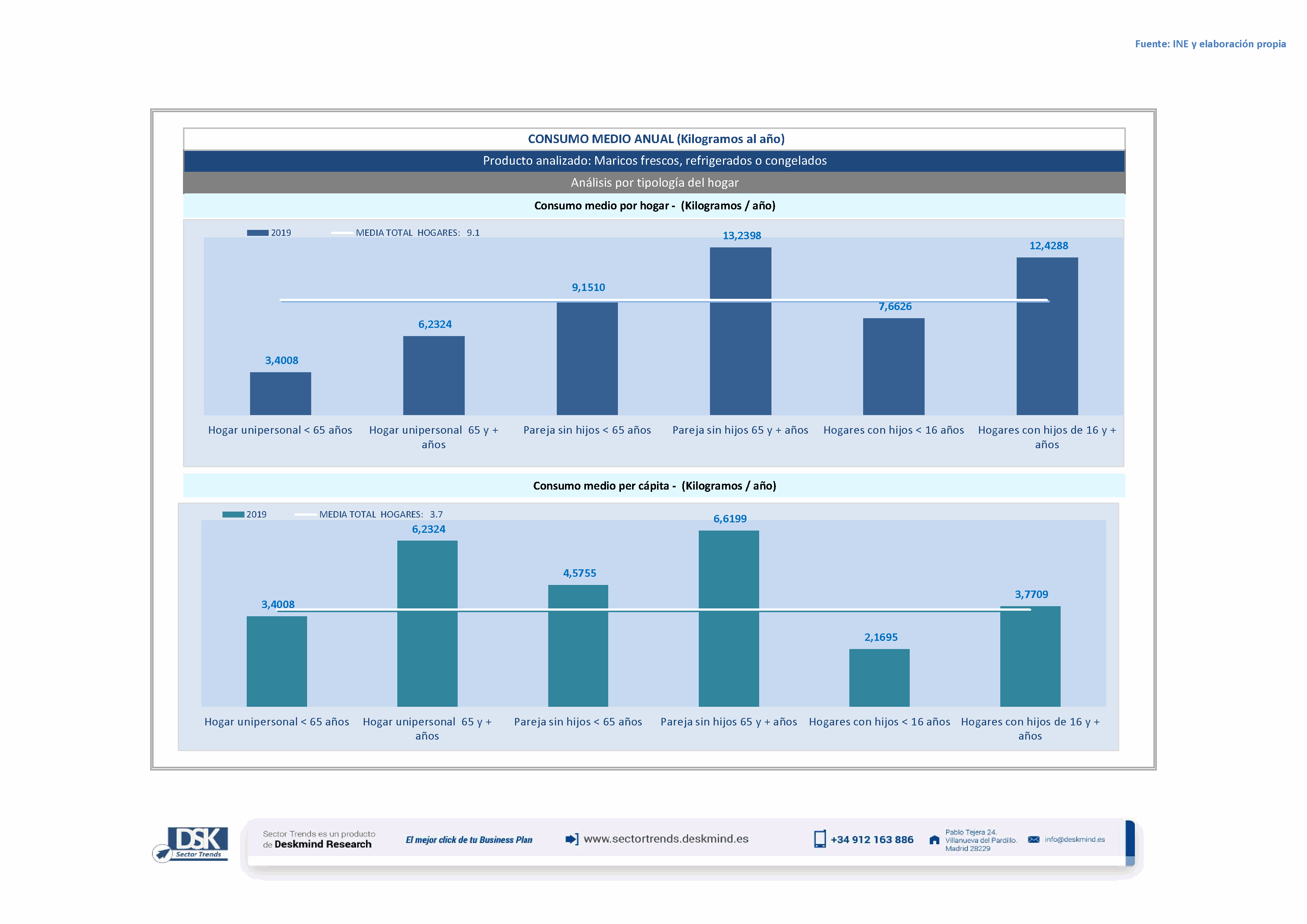Infografía consumo medio por tipo hogar de Maricos frescos, refrigerados o congelados