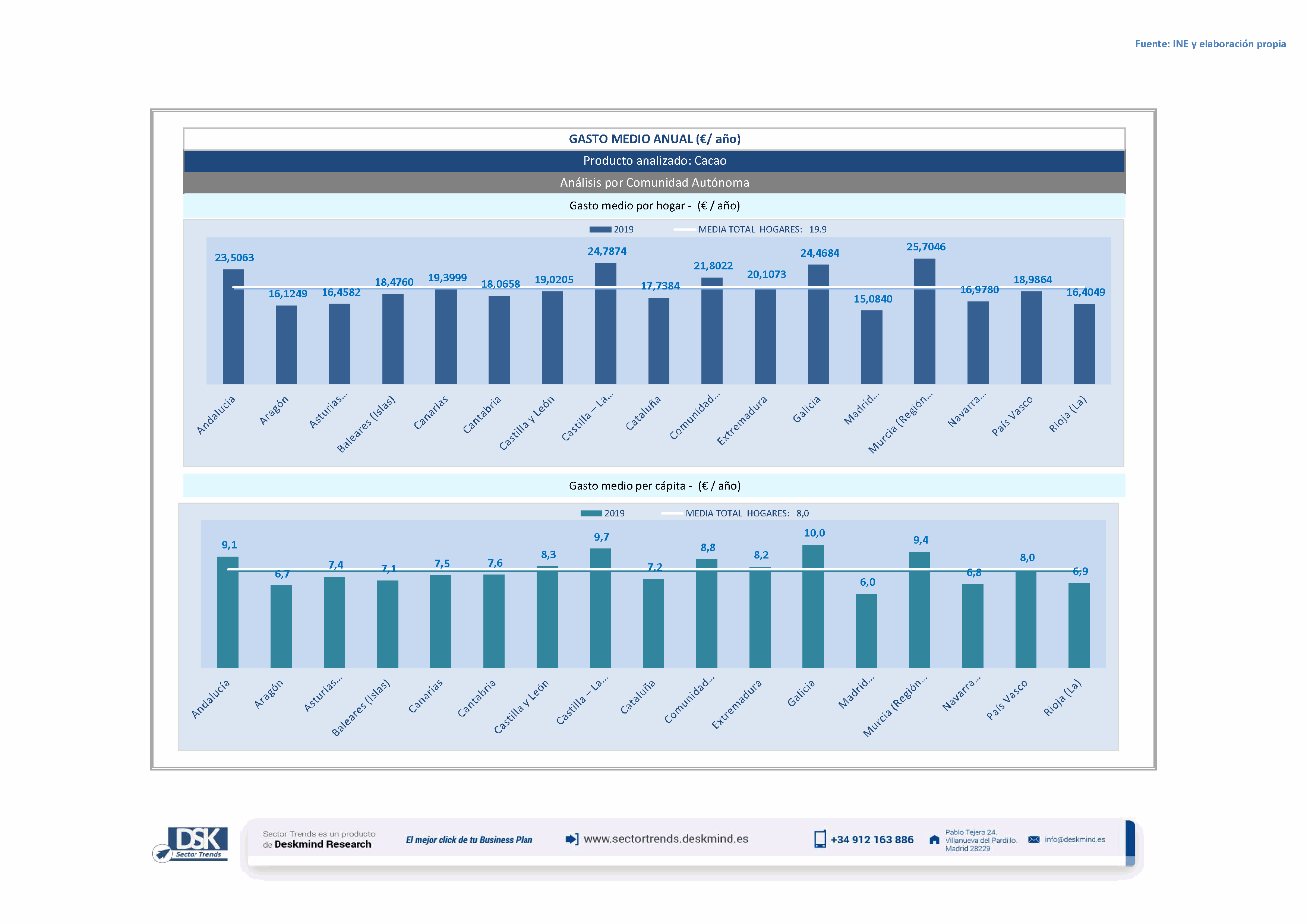 Infografía gasto medio por comunidad autónoma de Cacao