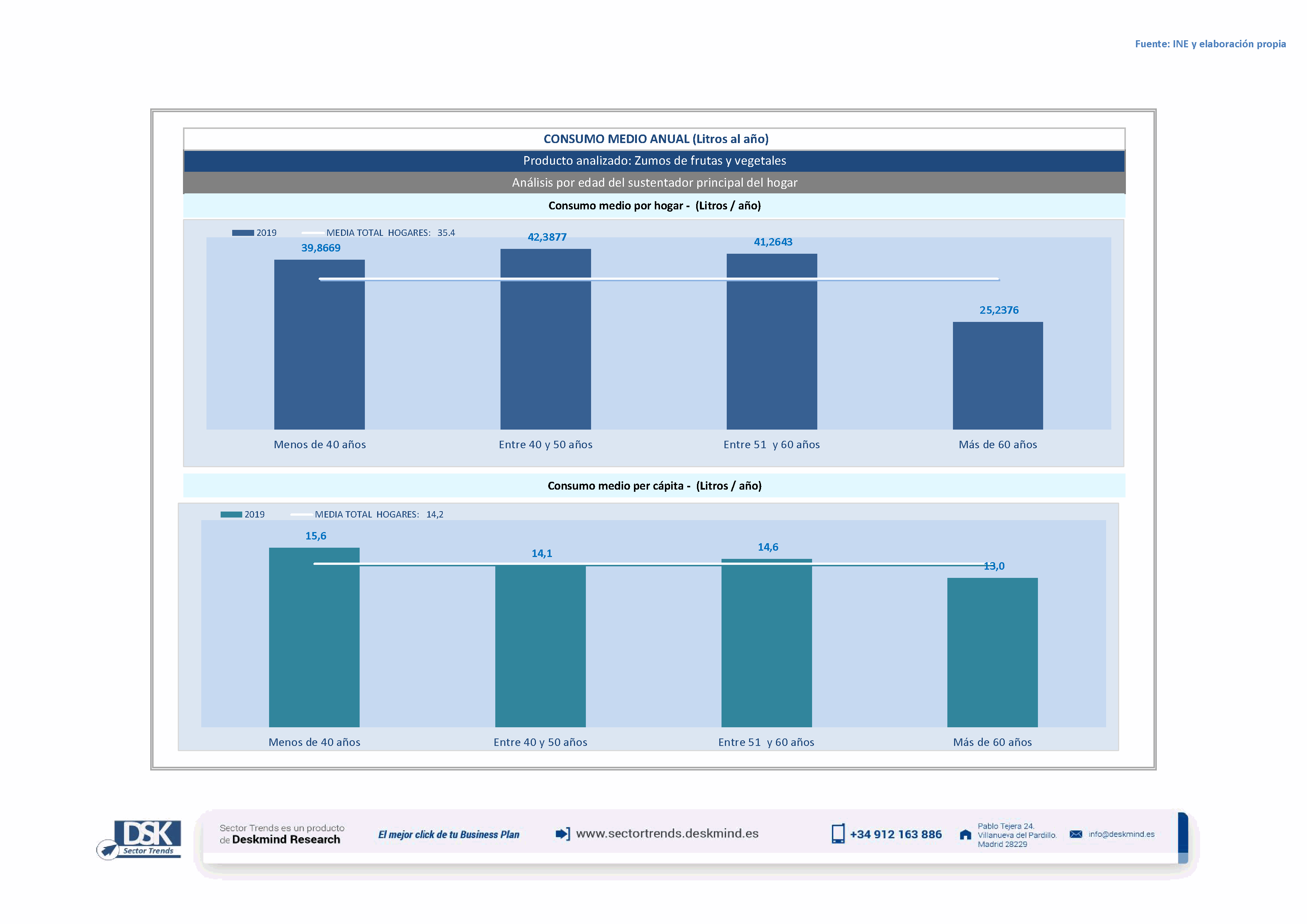 Infografía consumo medio por edad del sustentador principal de Zumos de frutas y vegetales