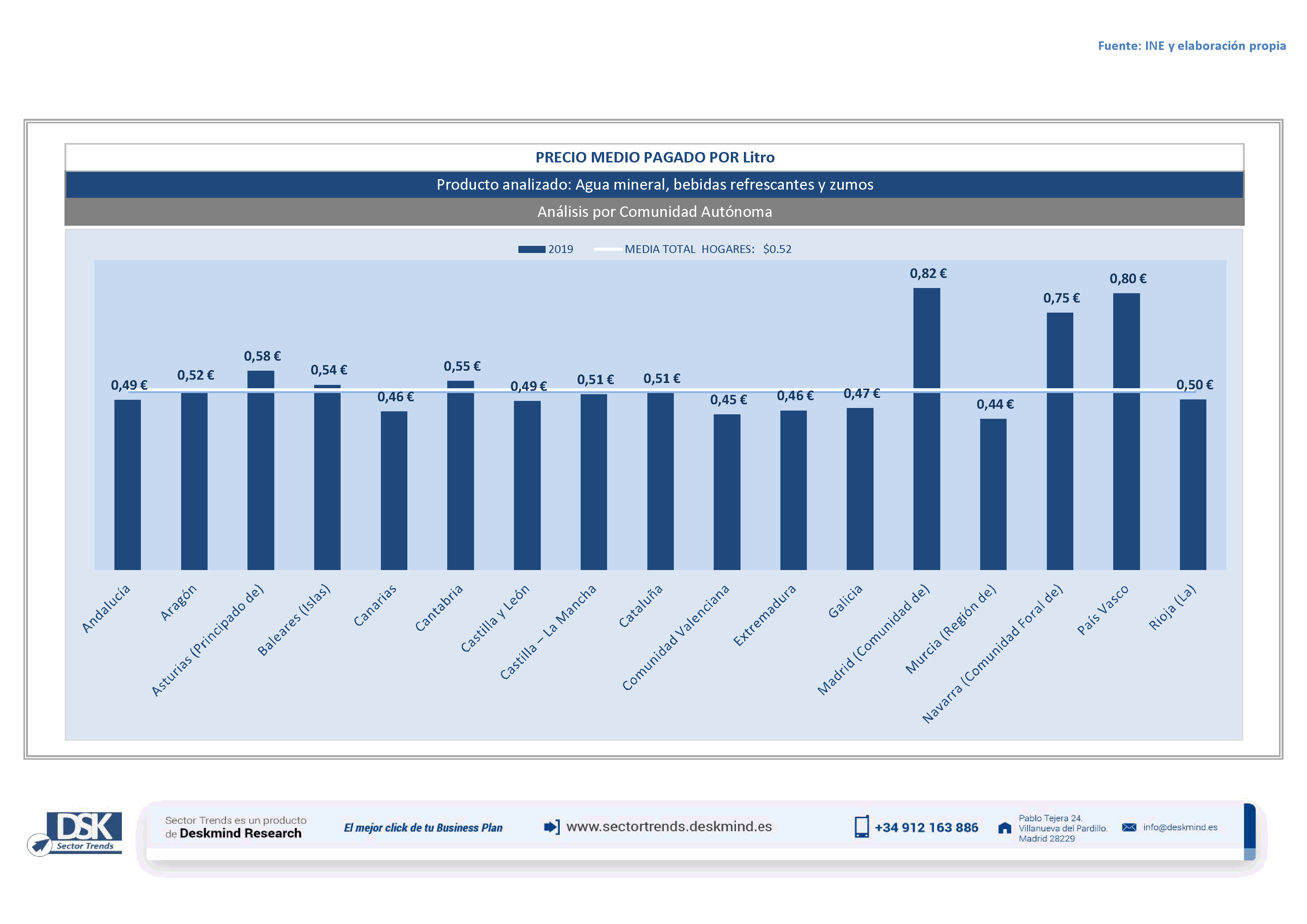 Infografía precio medio por comunidad autónoma de Análisis Total Sector Agua mineral, bebidas refrescantes y zumos