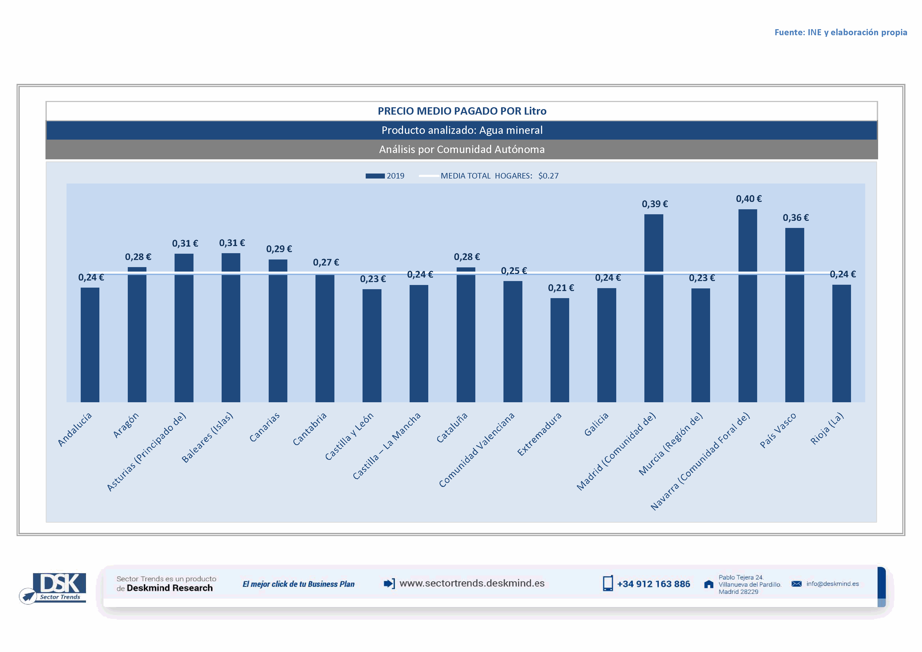 Infografía precio medio por comunidad autónoma de Agua mineral