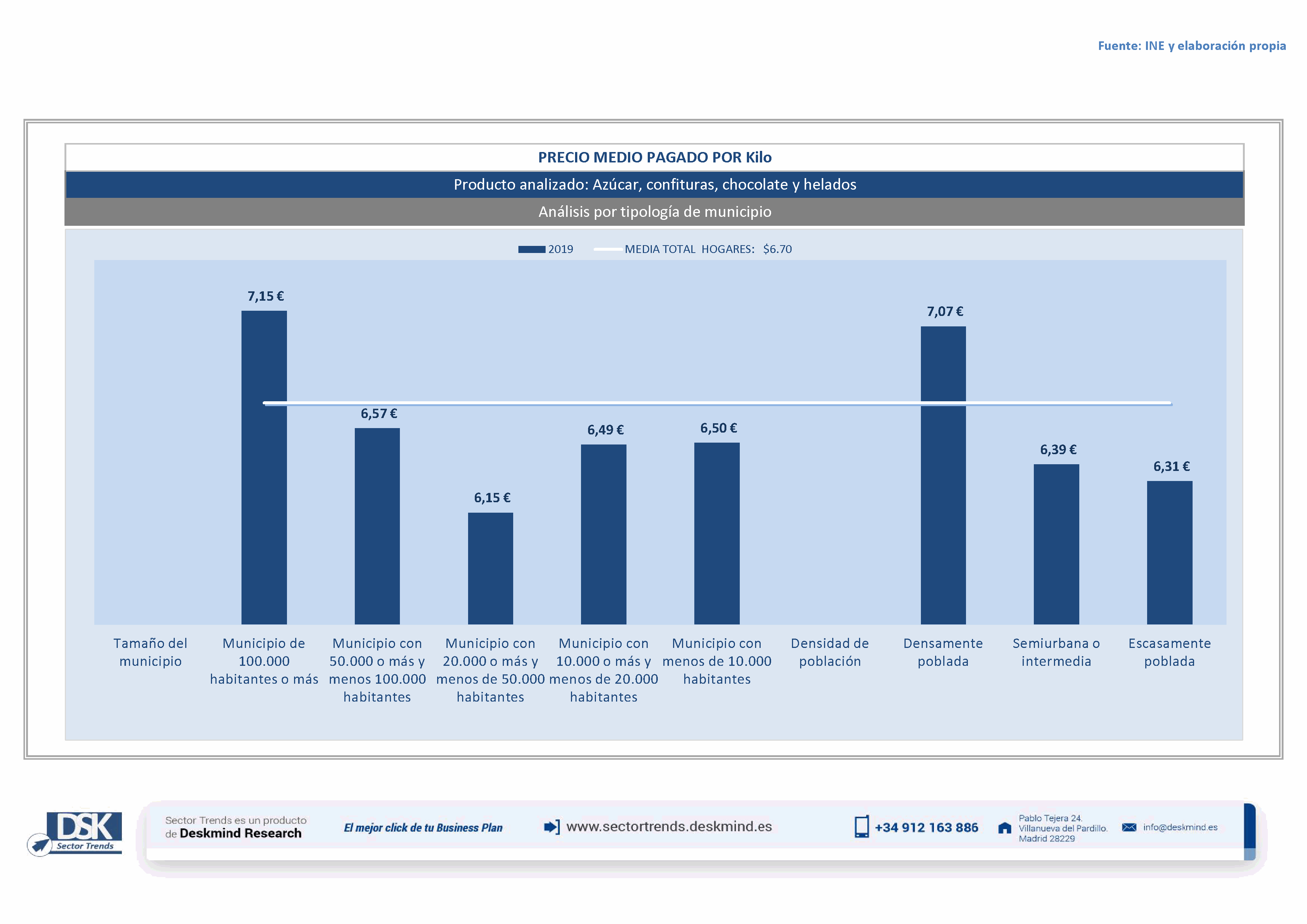 Infografía precio medio por tamaño de hábitat de Análisis Total Sector Azúcar, confituras, chocolate y helados