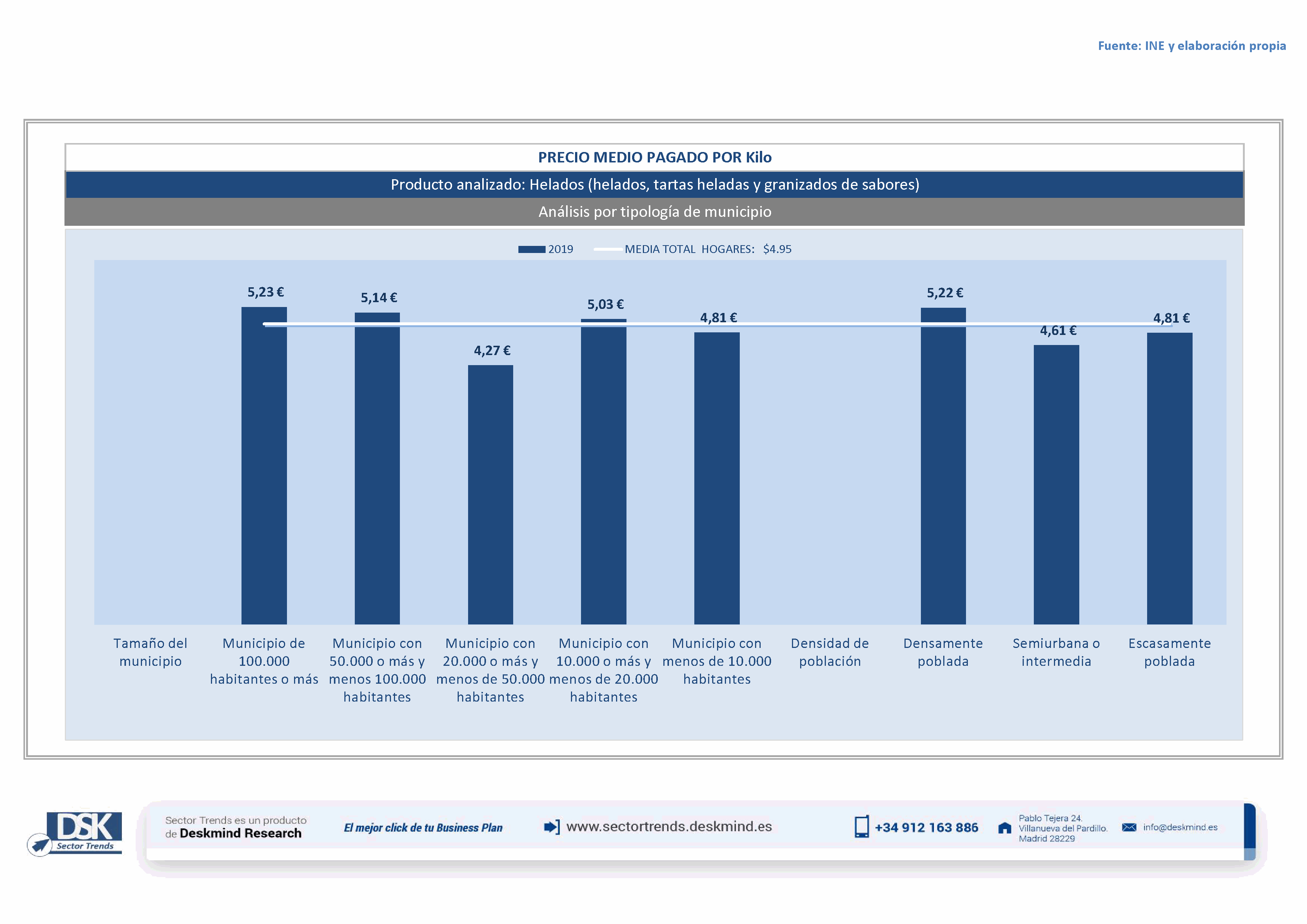 Infografía precio medio por tamaño de hábitat de Helados (helados, tartas heladas y granizados de sabores)