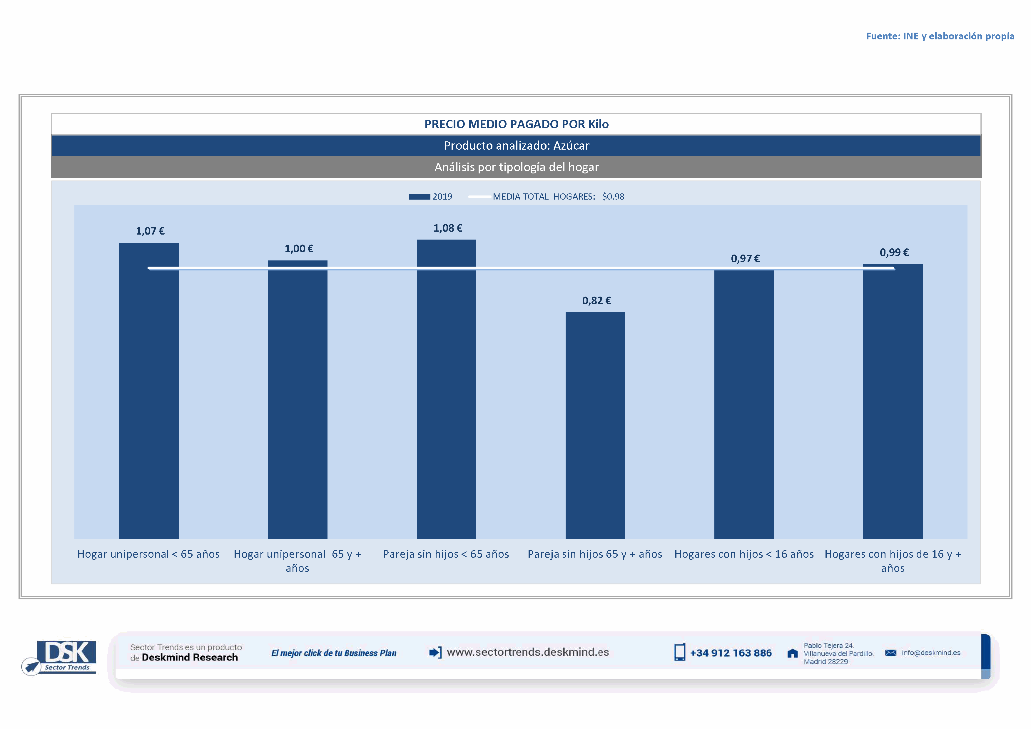 Infografía precio medio por tipo hogar de Azúcar