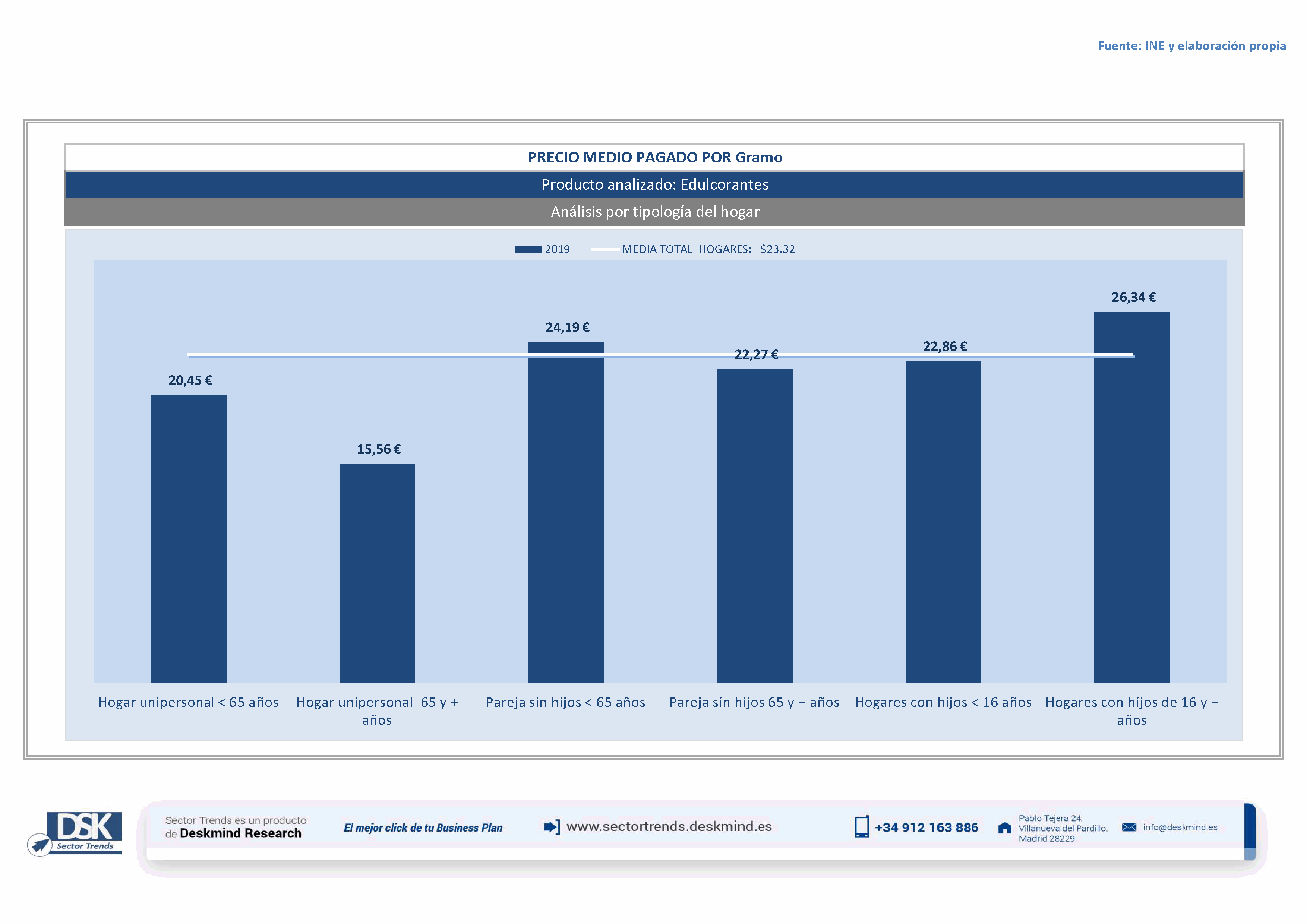 Infografía precio medio por tipo hogar de Edulcorantes