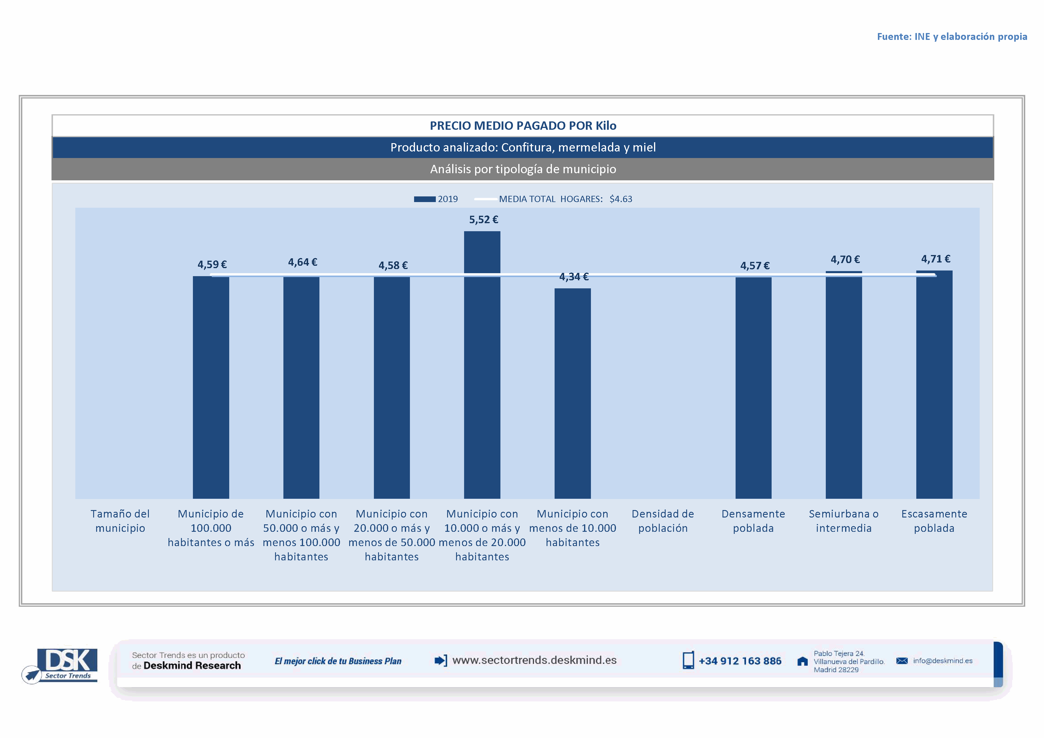 Infografía precio medio por tamaño de hábitat de Confitura, mermelada y miel