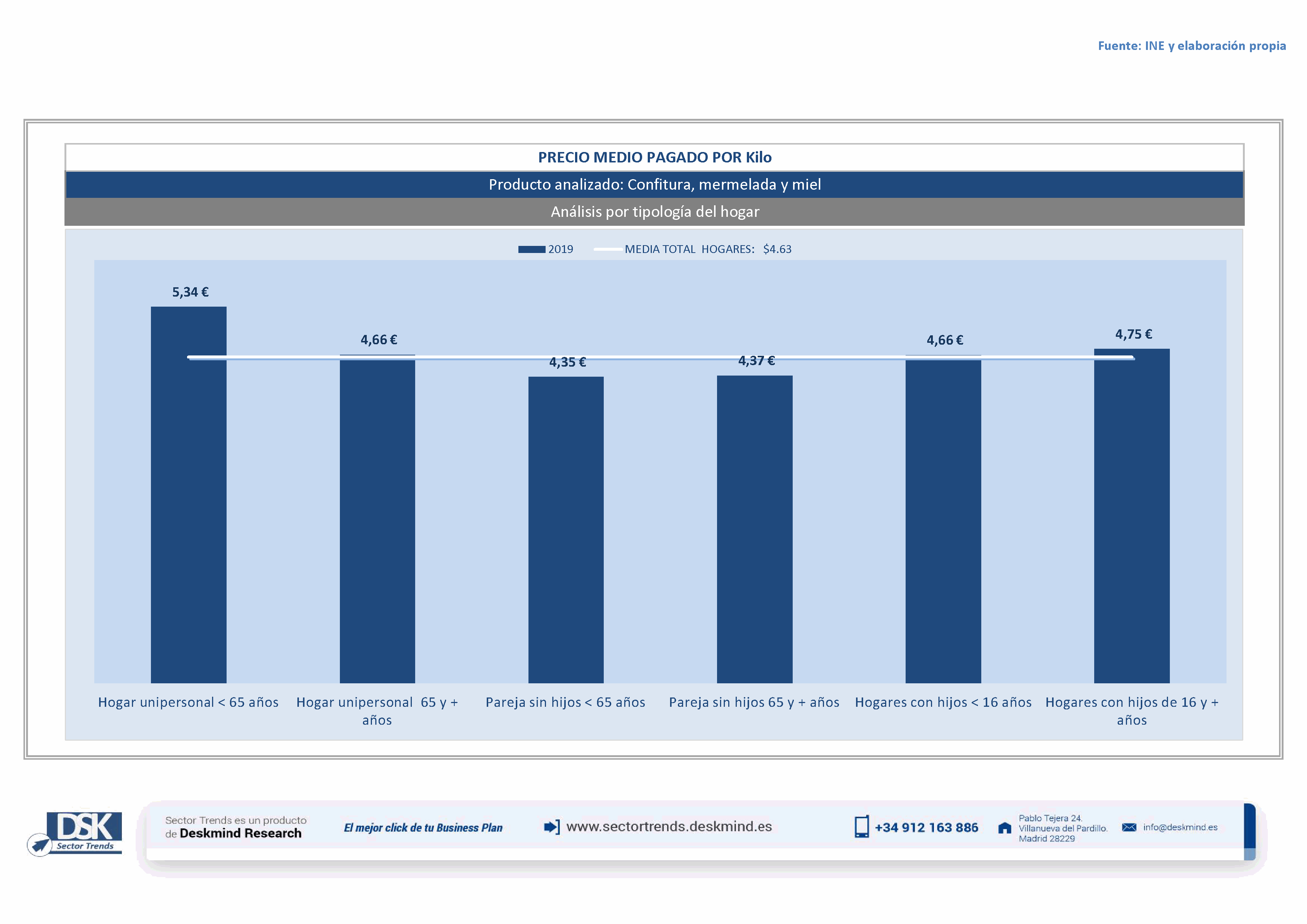 Infografía precio medio por tipo hogar de Confitura, mermelada y miel