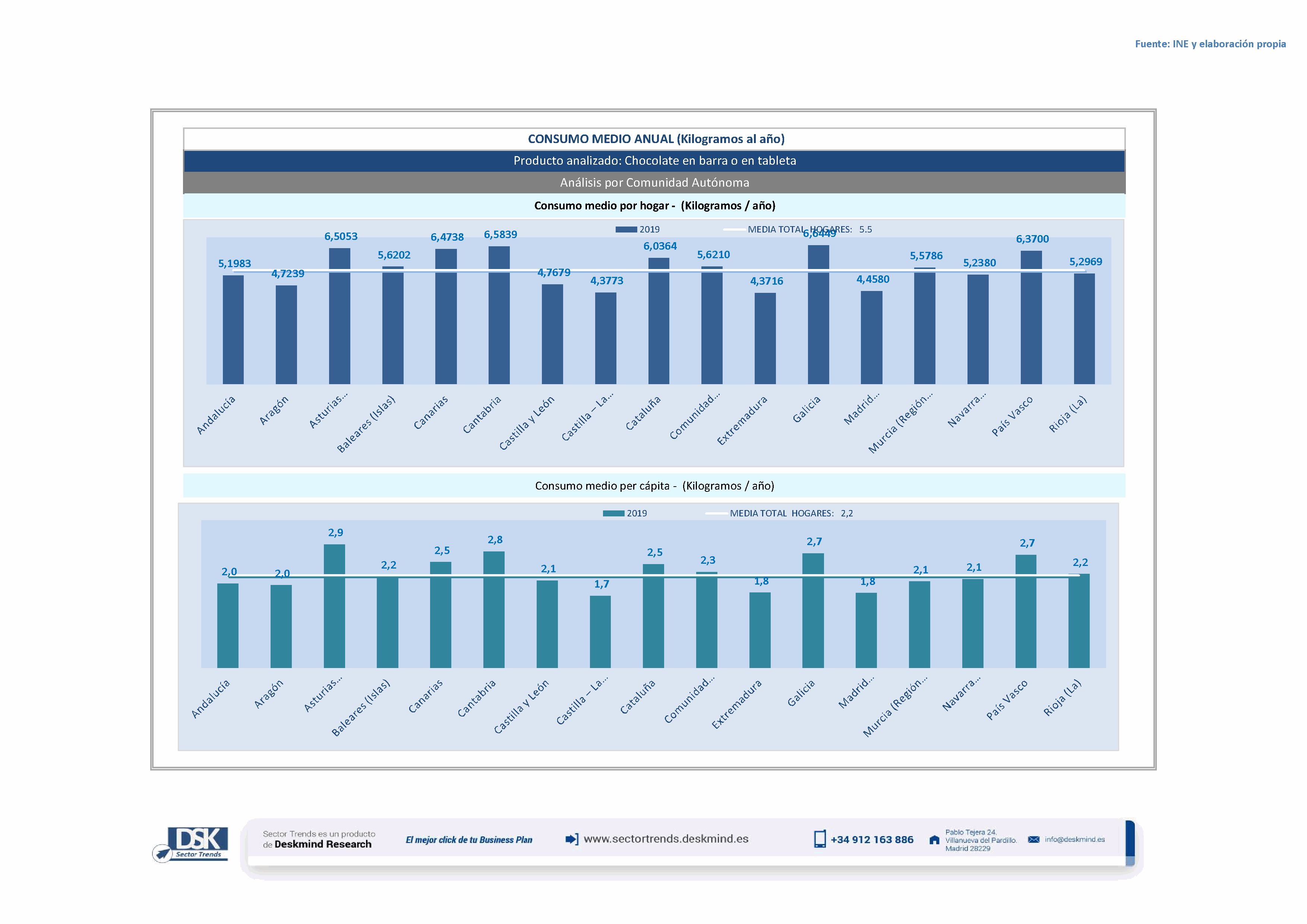 Infografía consumo medio por comunidad autónoma de Análisis Total Sector Azúcar, confituras, chocolate y helados