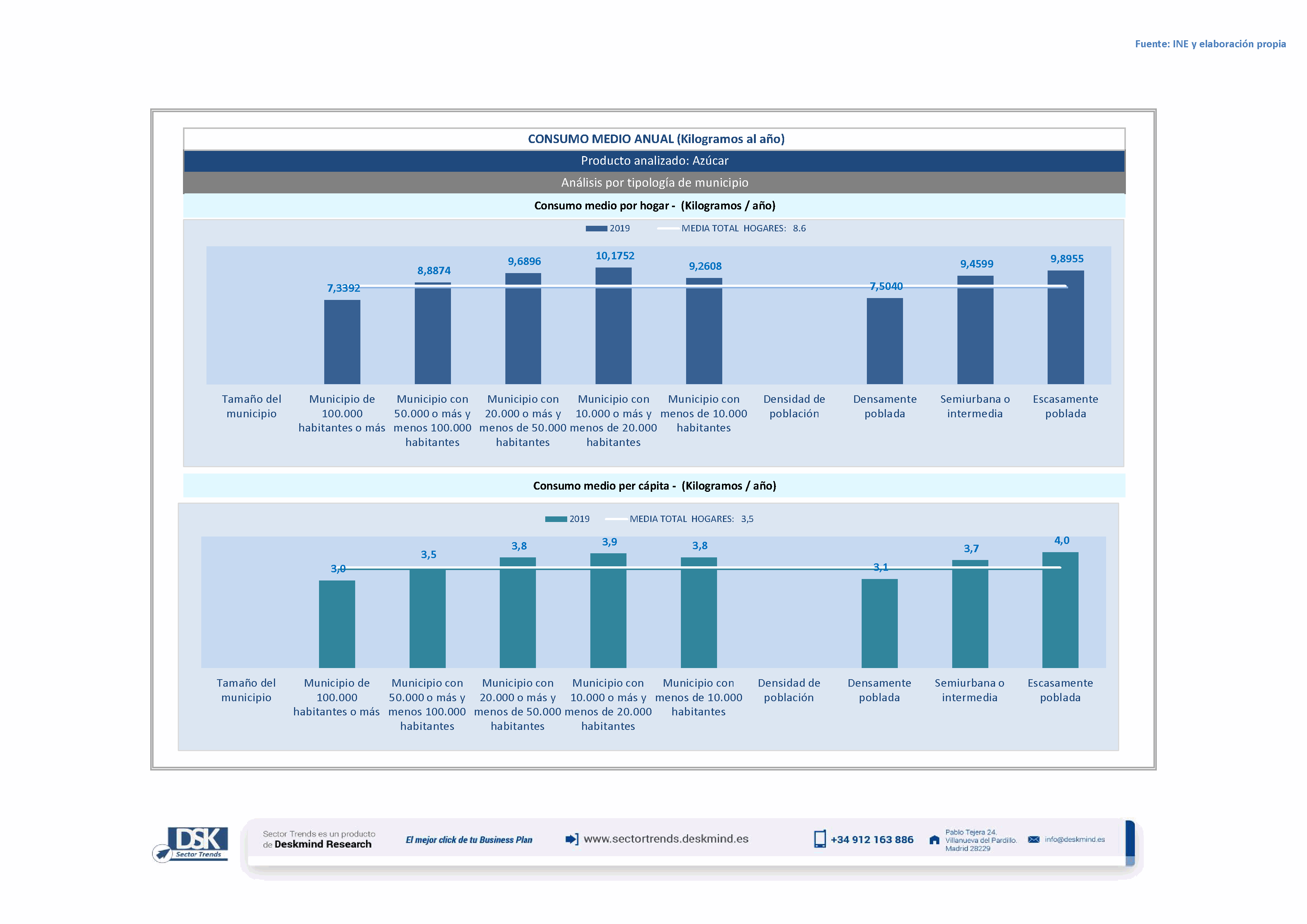 Infografía consumo medio por tamaño de hábitat de Azúcar