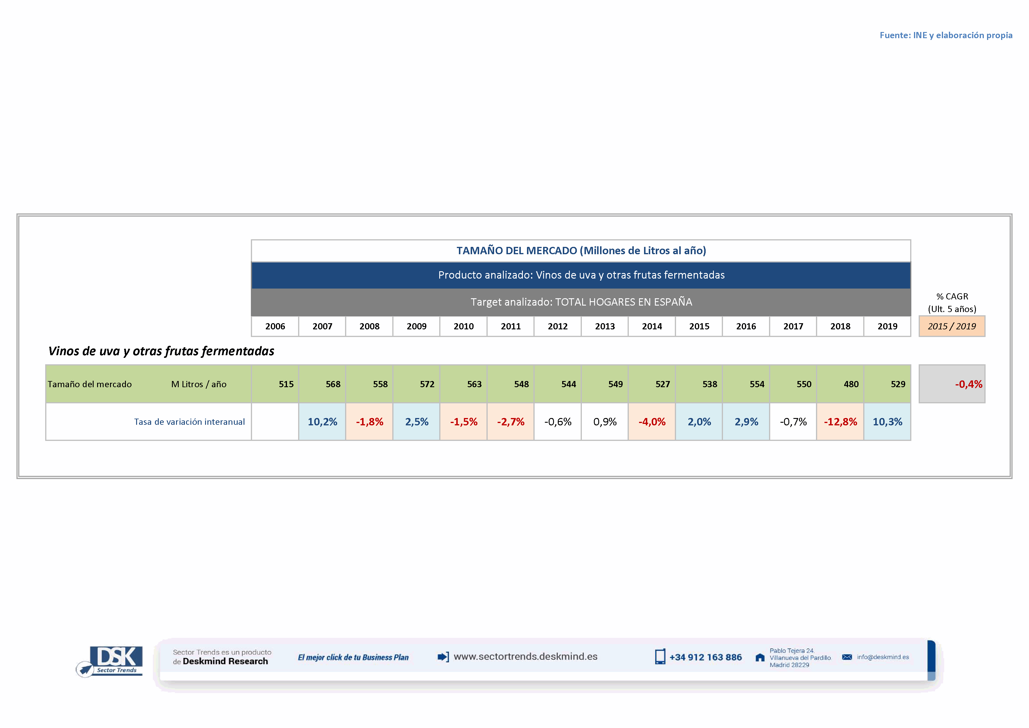 Cuadro estadístico tamaño del mercado de Vinos de uva y otras frutas fermentadas