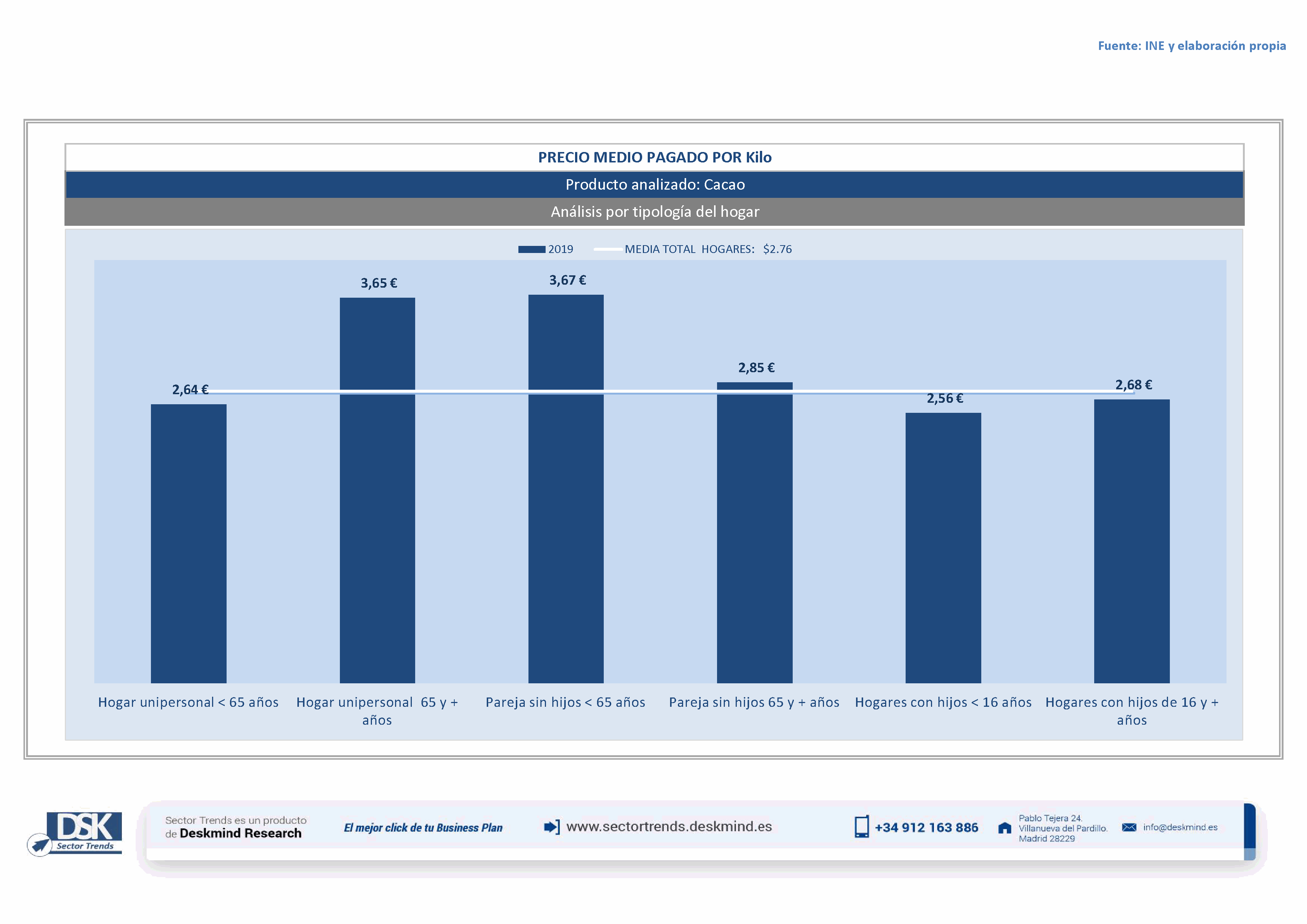 Infografía precio medio por tipo hogar de Cacao