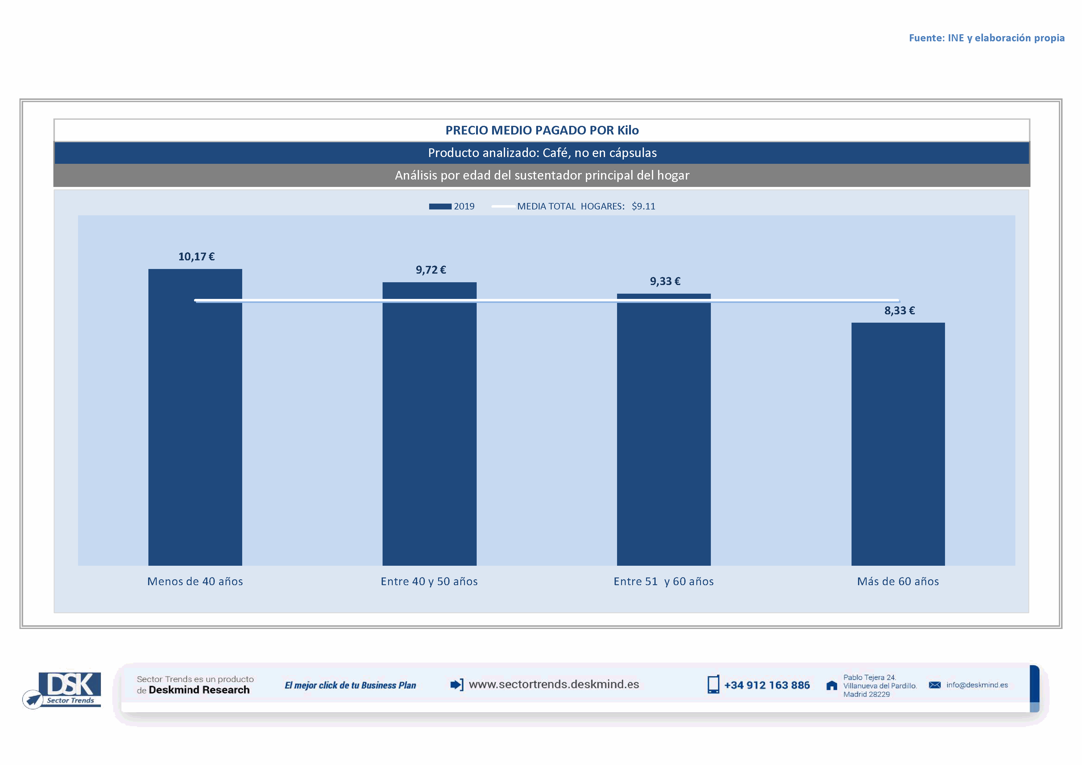 Infografía precio medio por edad del sustentador principal de Café, no en cápsulas