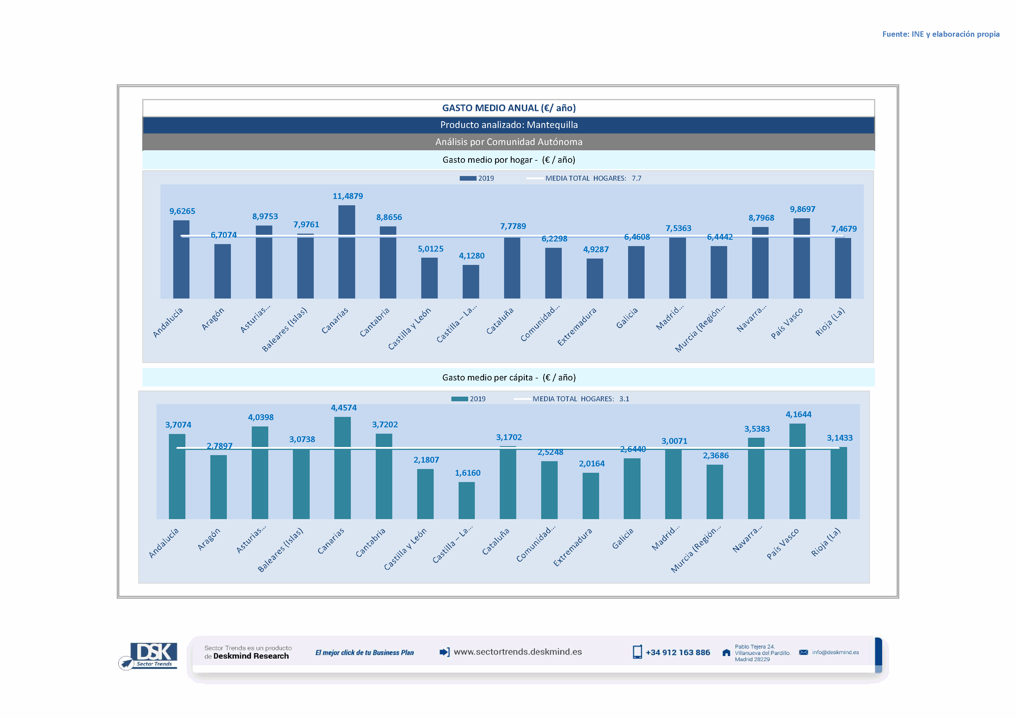 Infografía gasto medio por comunidad autónoma de Mantequilla