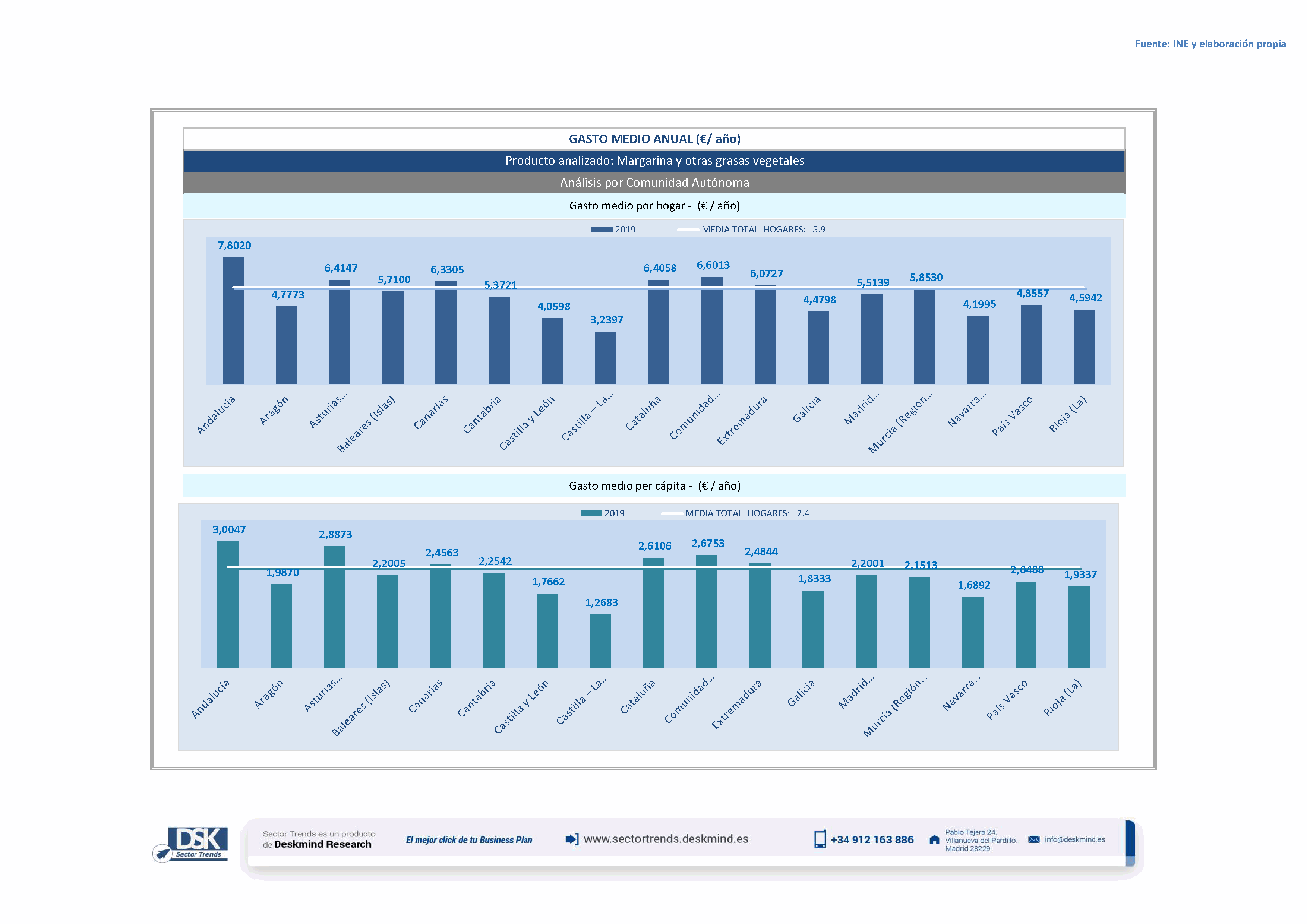 Infografía gasto medio por comunidad autónoma de Margarina y otras grasas vegetales