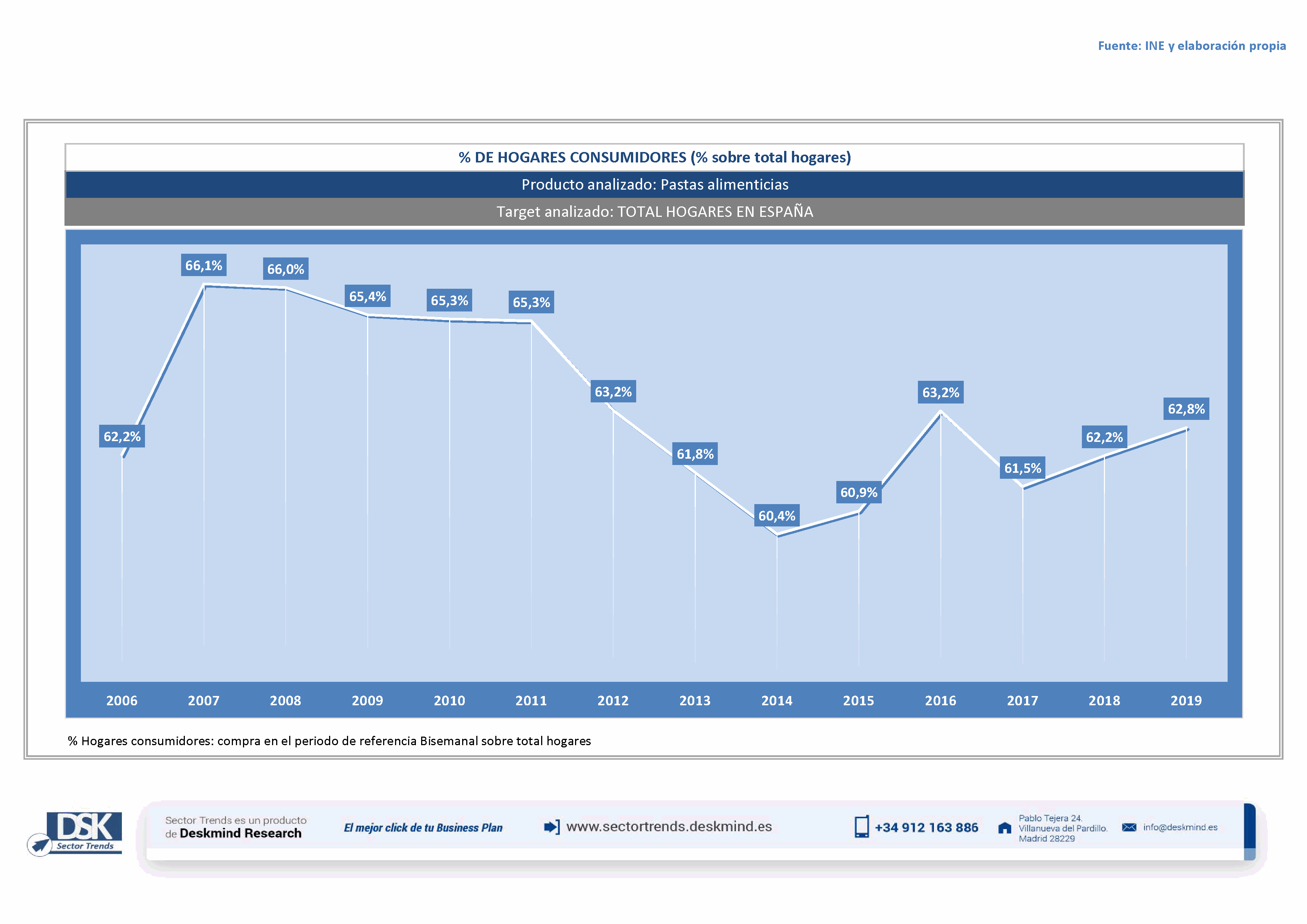 Gráfico evolutivo % de hogares consumidores de Pastas alimenticias