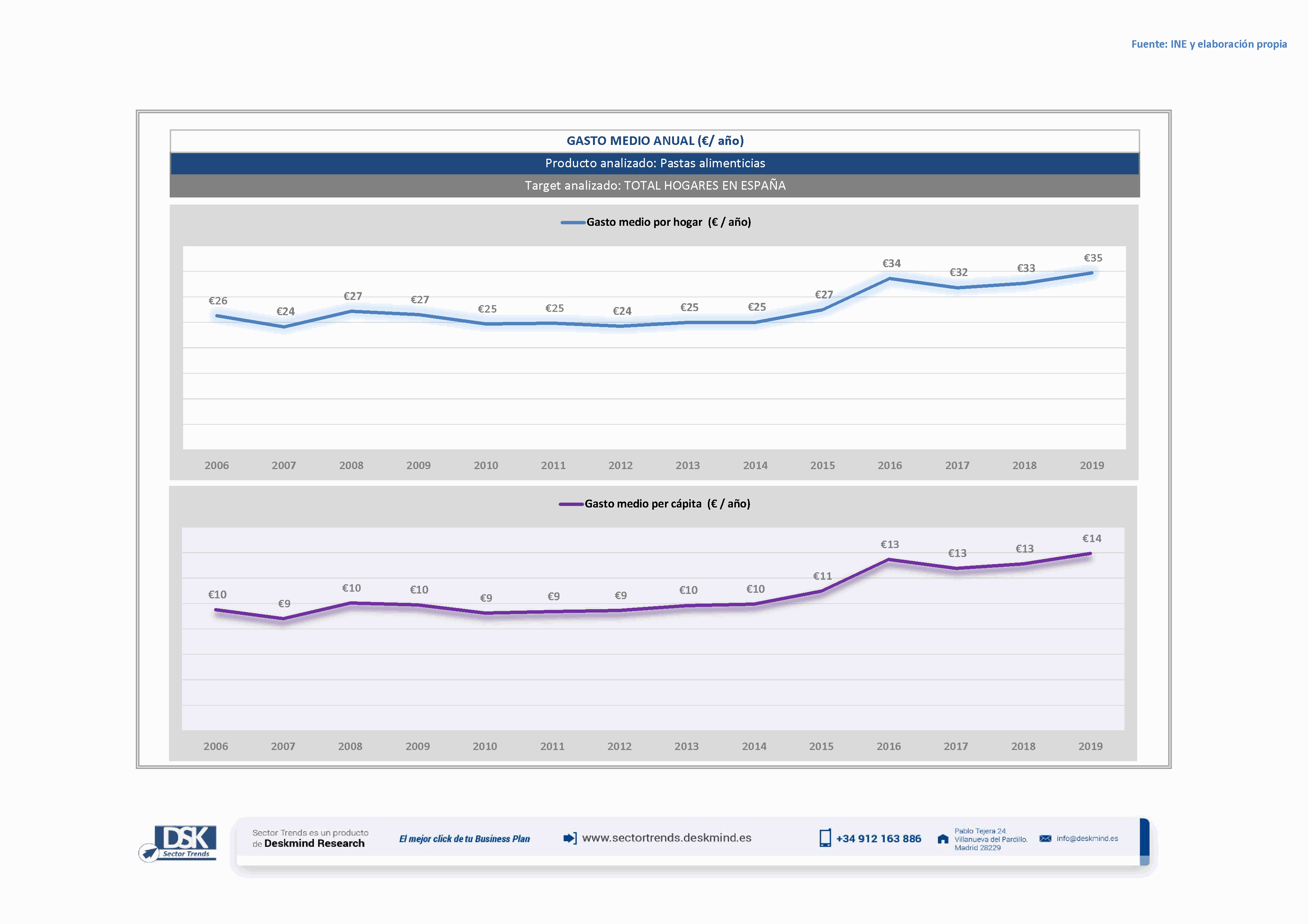 Gráfico evolutivo gasto medio anual de Pastas alimenticias