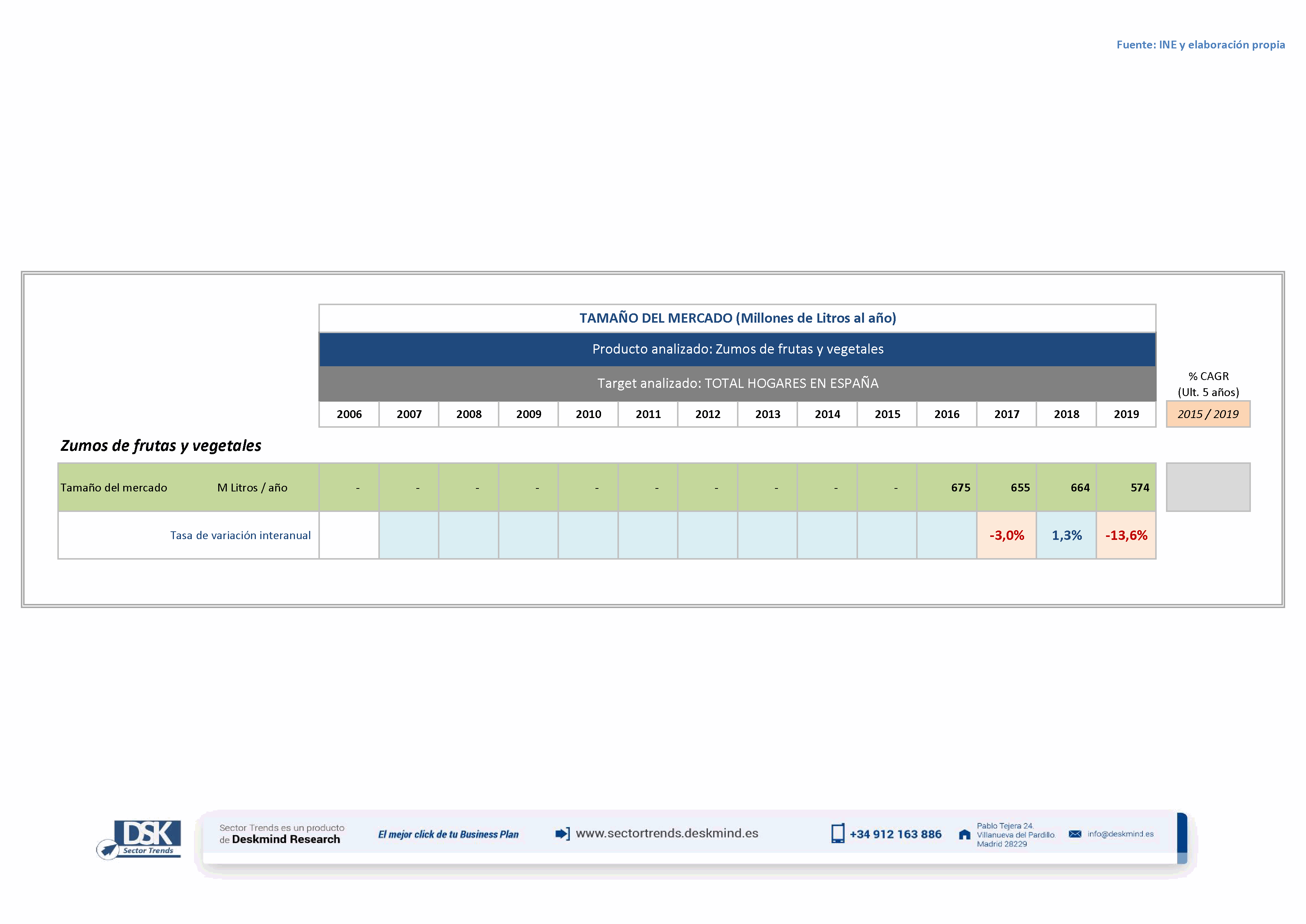 Cuadro estadístico tamaño del mercado de Zumos de frutas y vegetales