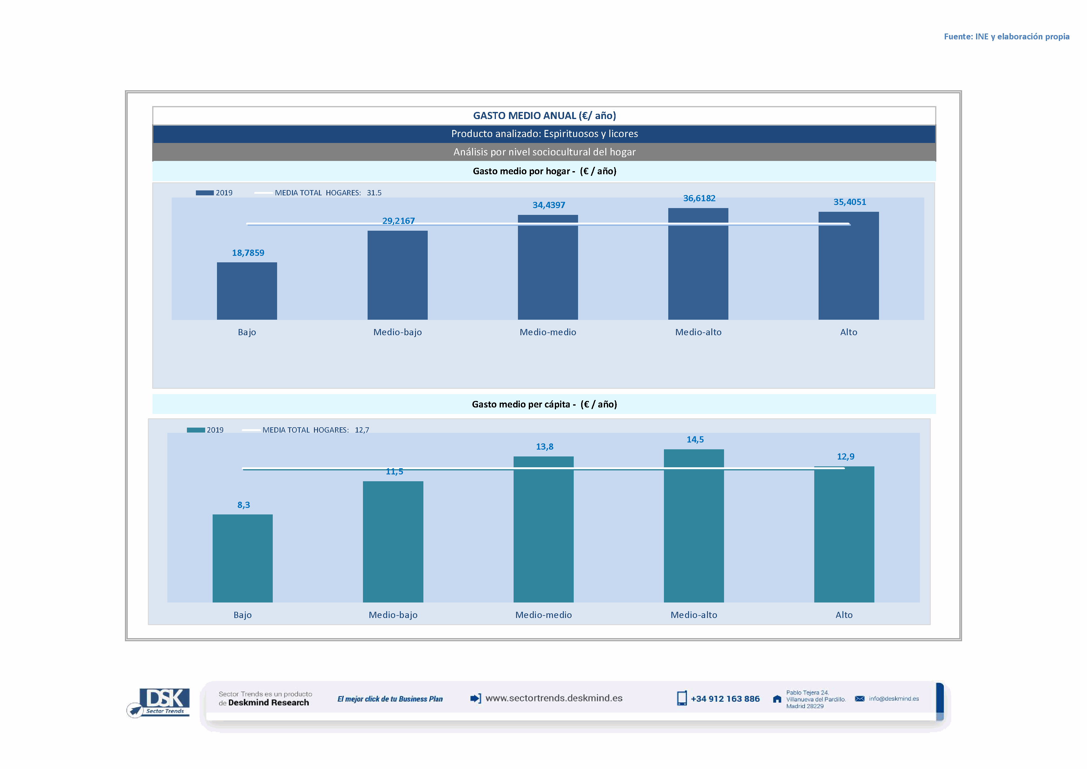Infografía gasto medio por tamaño de hábitat de Espirituosos y licores
