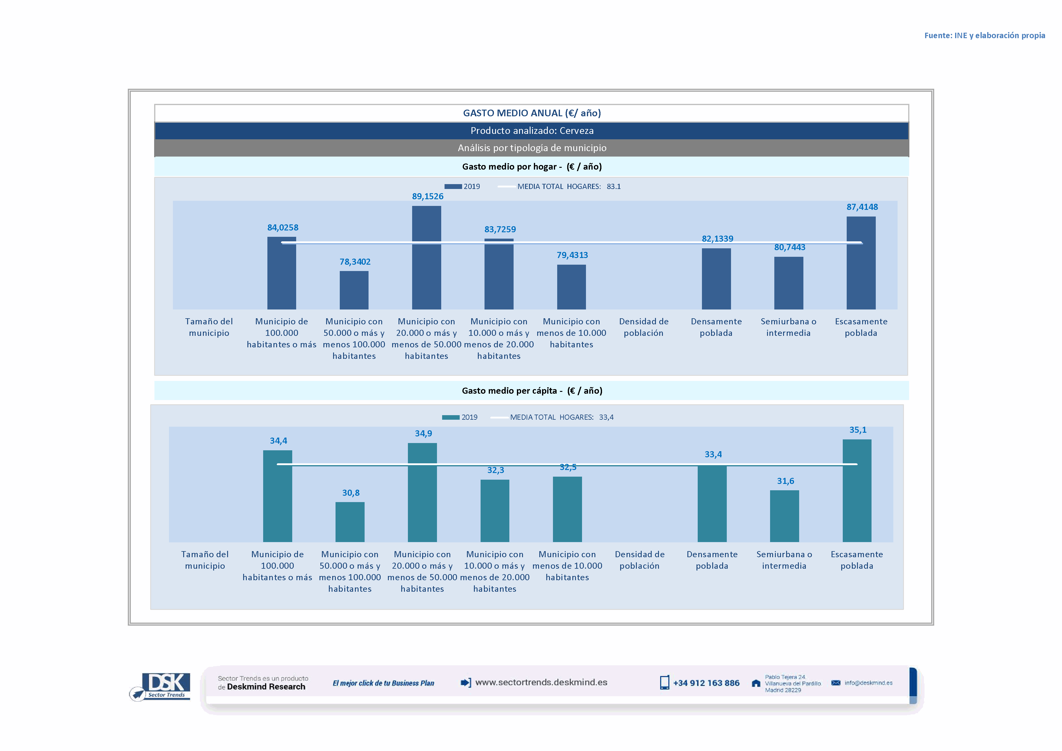 Infografía gasto medio por tamaño de hábitat de Cerveza