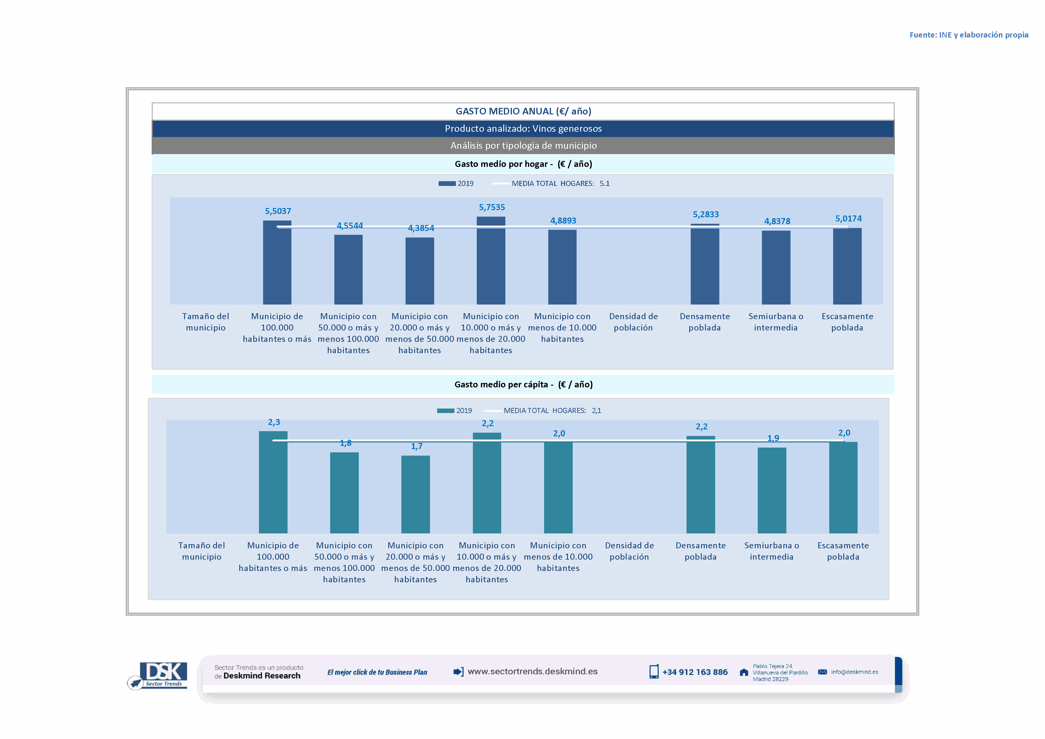 Infografía gasto medio por tamaño de hábitat de Vinos generosos
