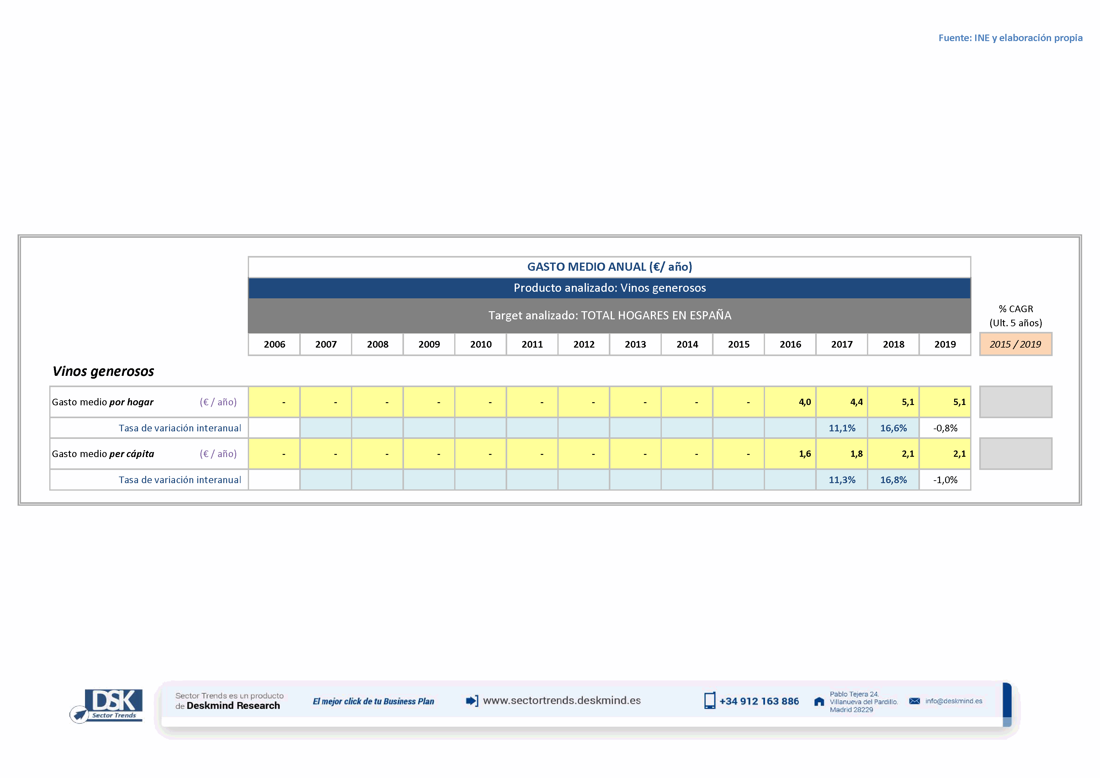 Cuadro estadístico gasto medio de Vinos de uva y otras frutas fermentadas
