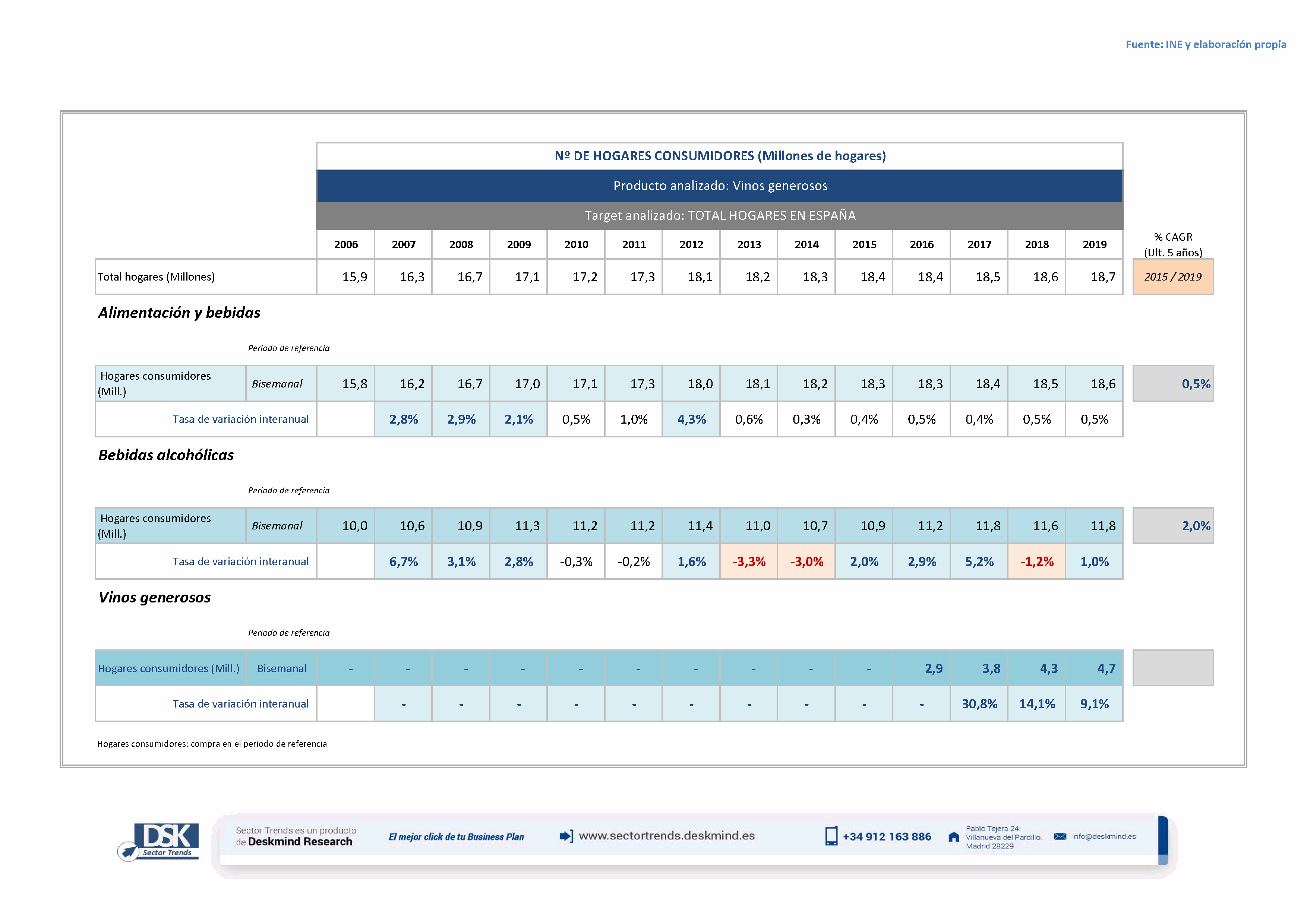 Cuadro estadístico num hogares consumidores de Vinos generosos