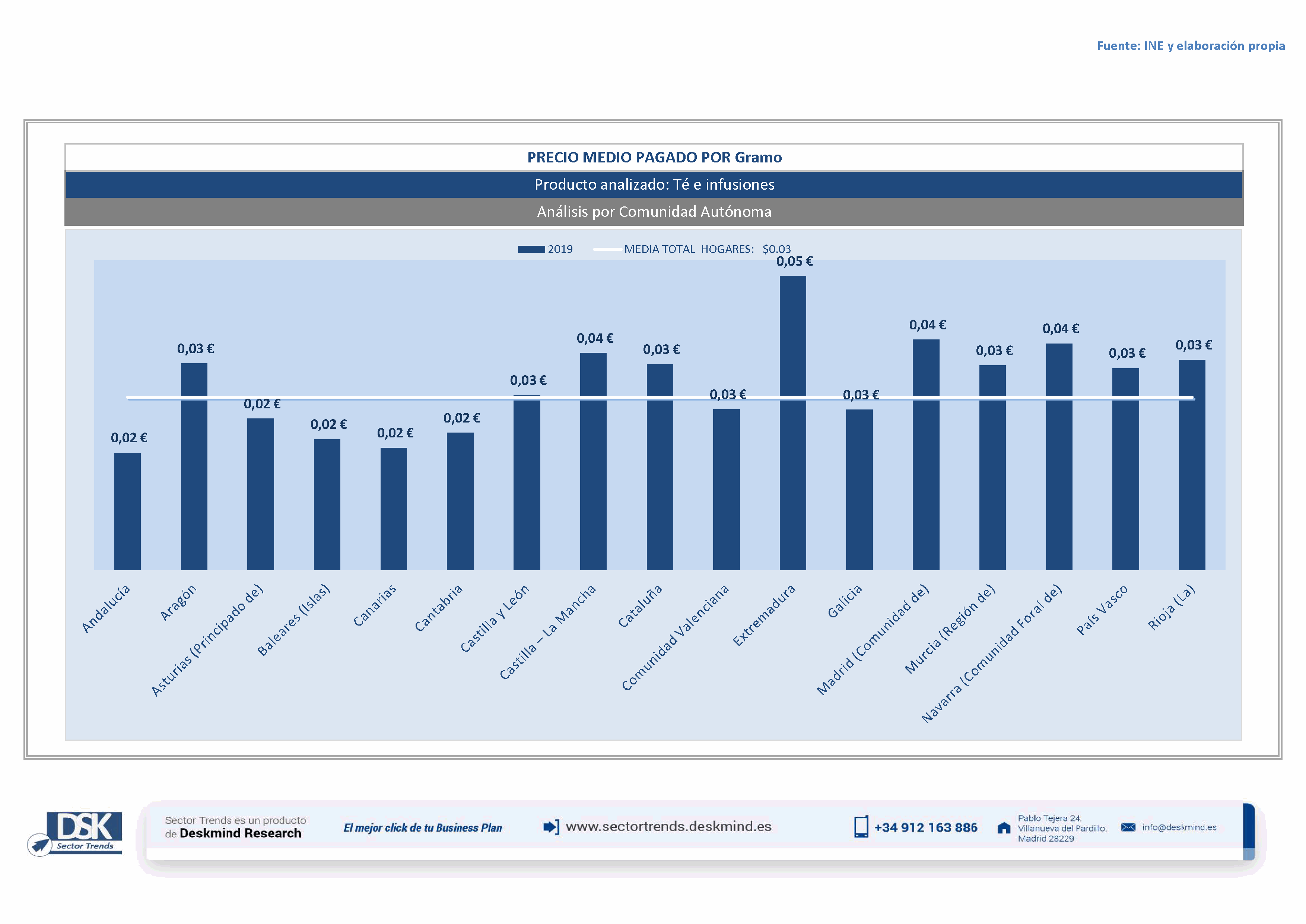 Infografía precio medio por comunidad autónoma de Té e infusiones