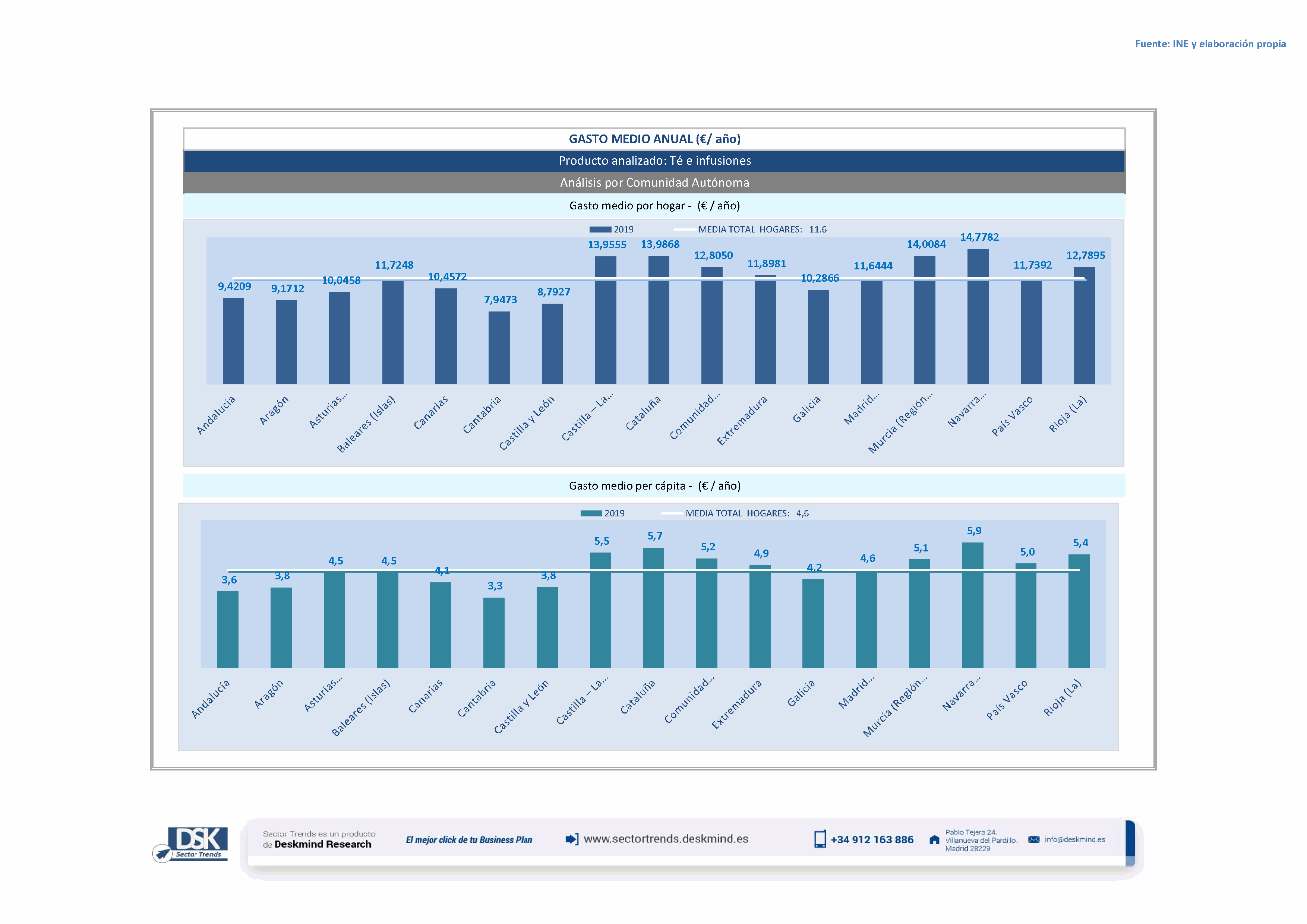 Infografía gasto medio por comunidad autónoma de Té e infusiones
