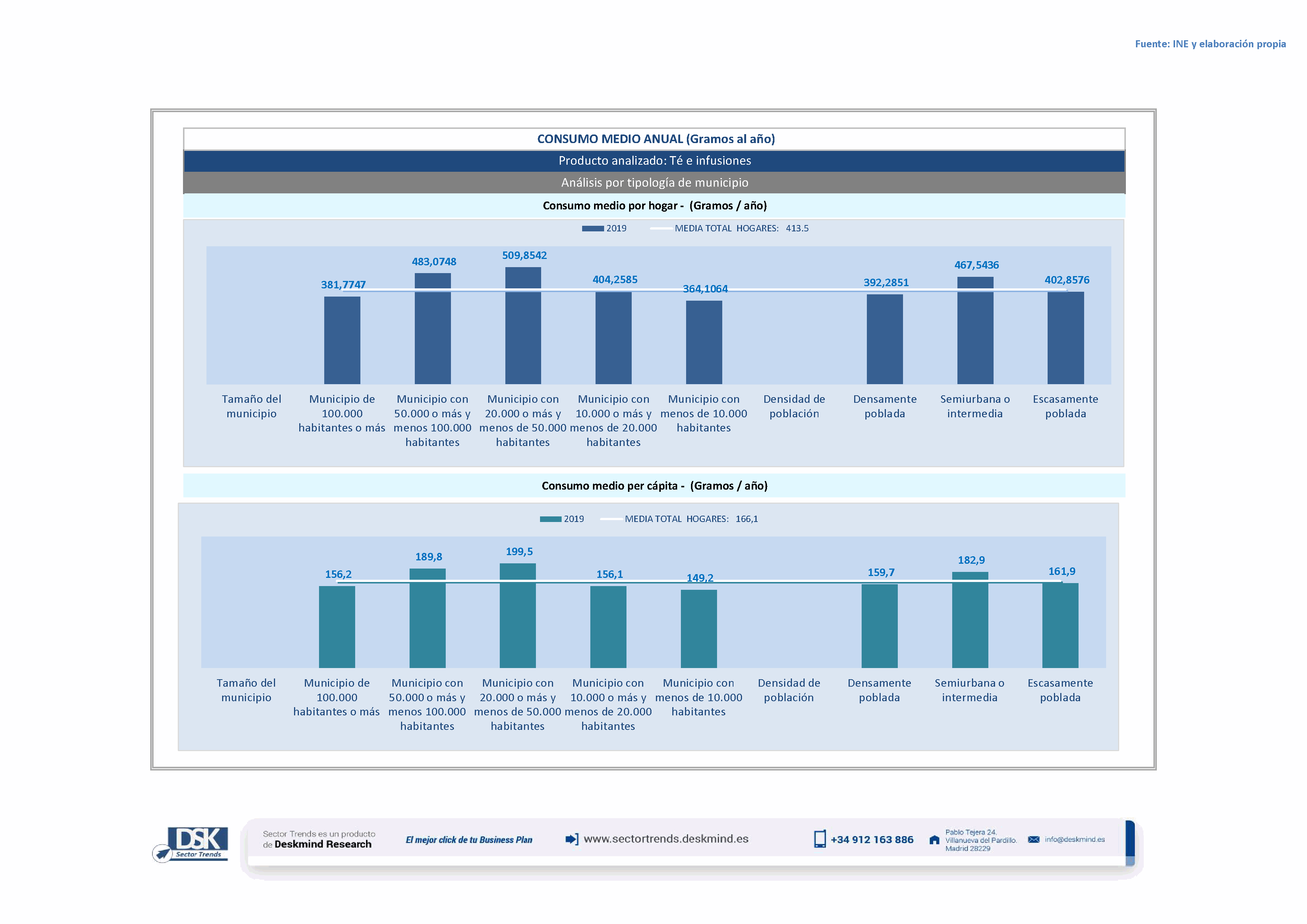 Infografía consumo medio por tamaño de hábitat de Té e infusiones