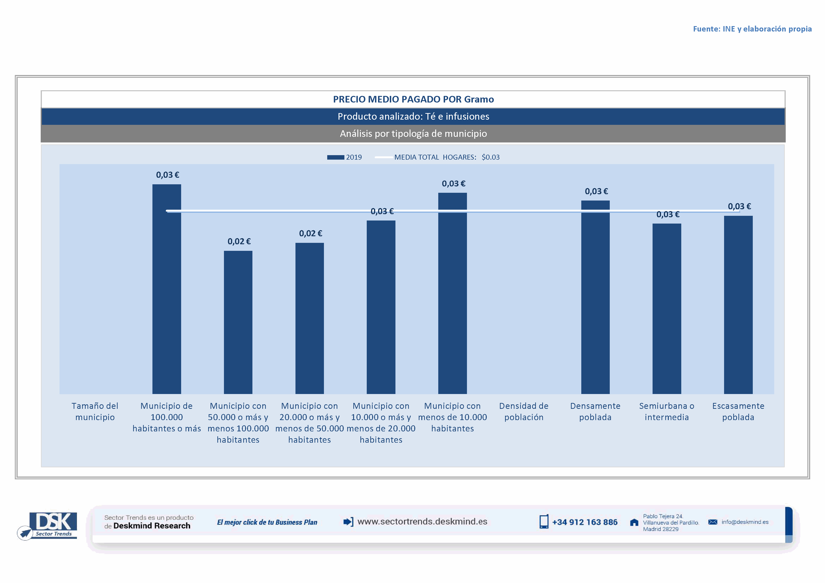 Infografía precio medio por tamaño de hábitat de Té e infusiones