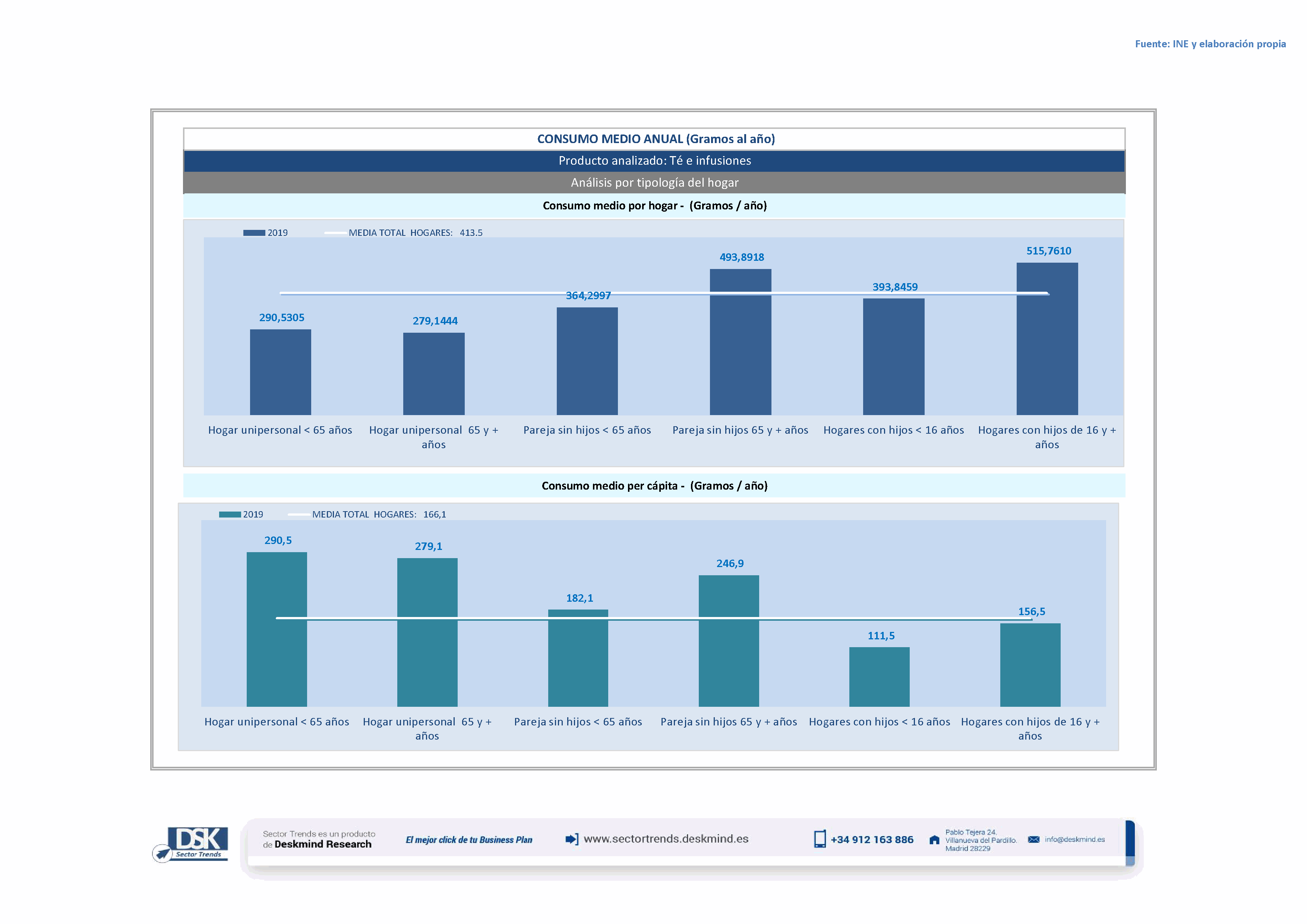 Infografía consumo medio por tipo hogar de Té e infusiones