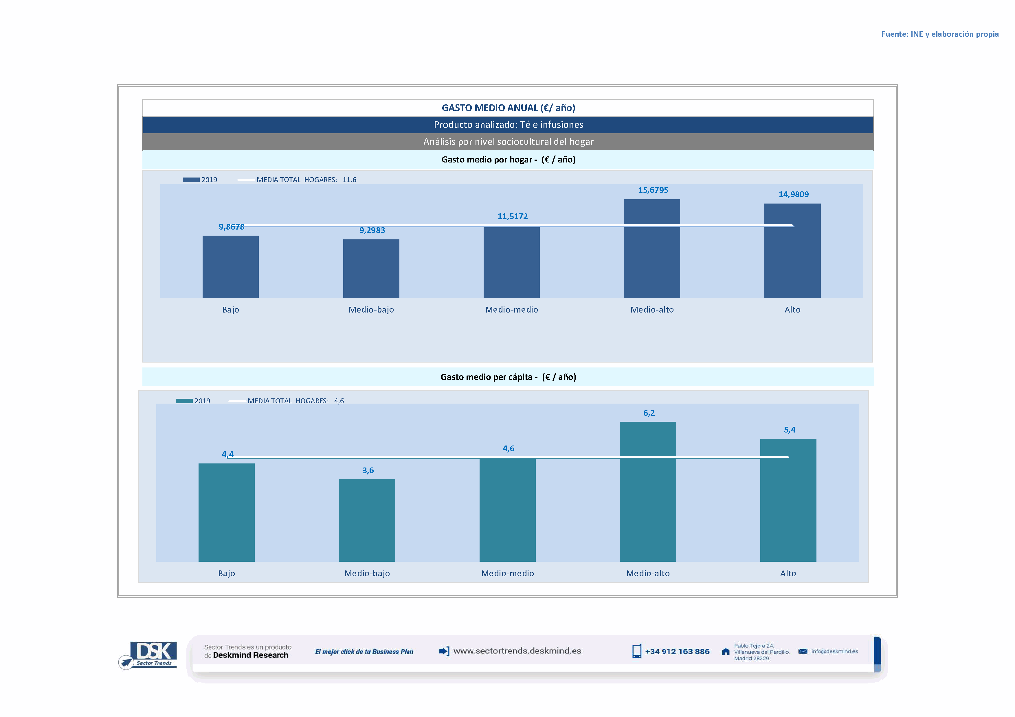 Infografía gasto medio por tipo hogar de Té e infusiones