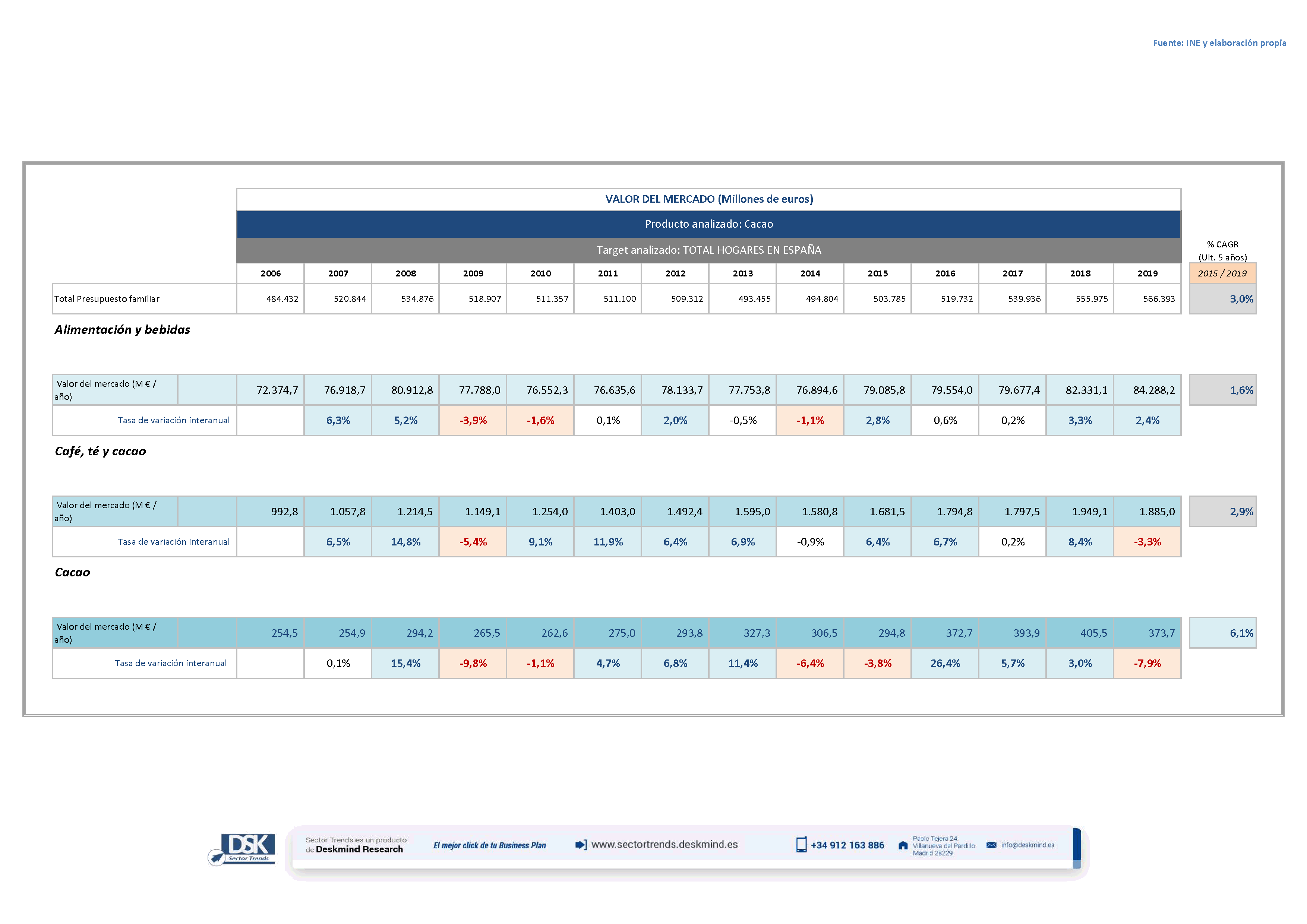 Cuadro estadístico tamaño del mercado de Análisis Total Sector Café, té y cacao