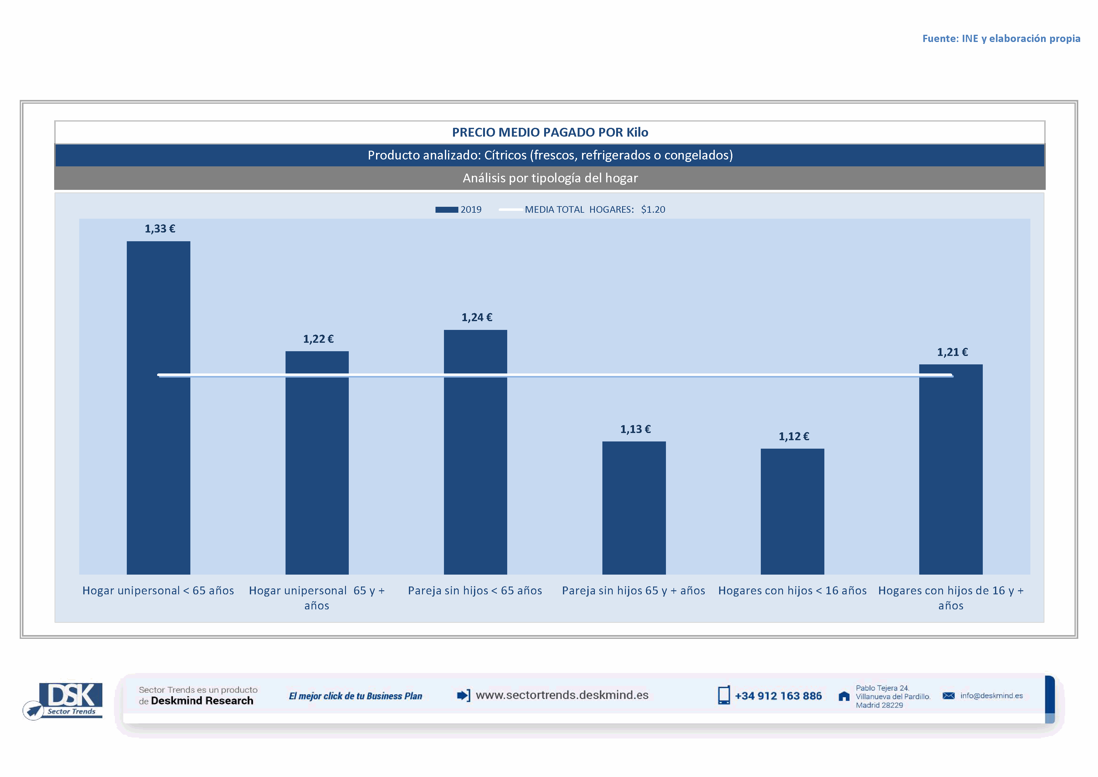Infografía precio medio por tipo hogar de Cítricos (frescos, refrigerados o congelados)