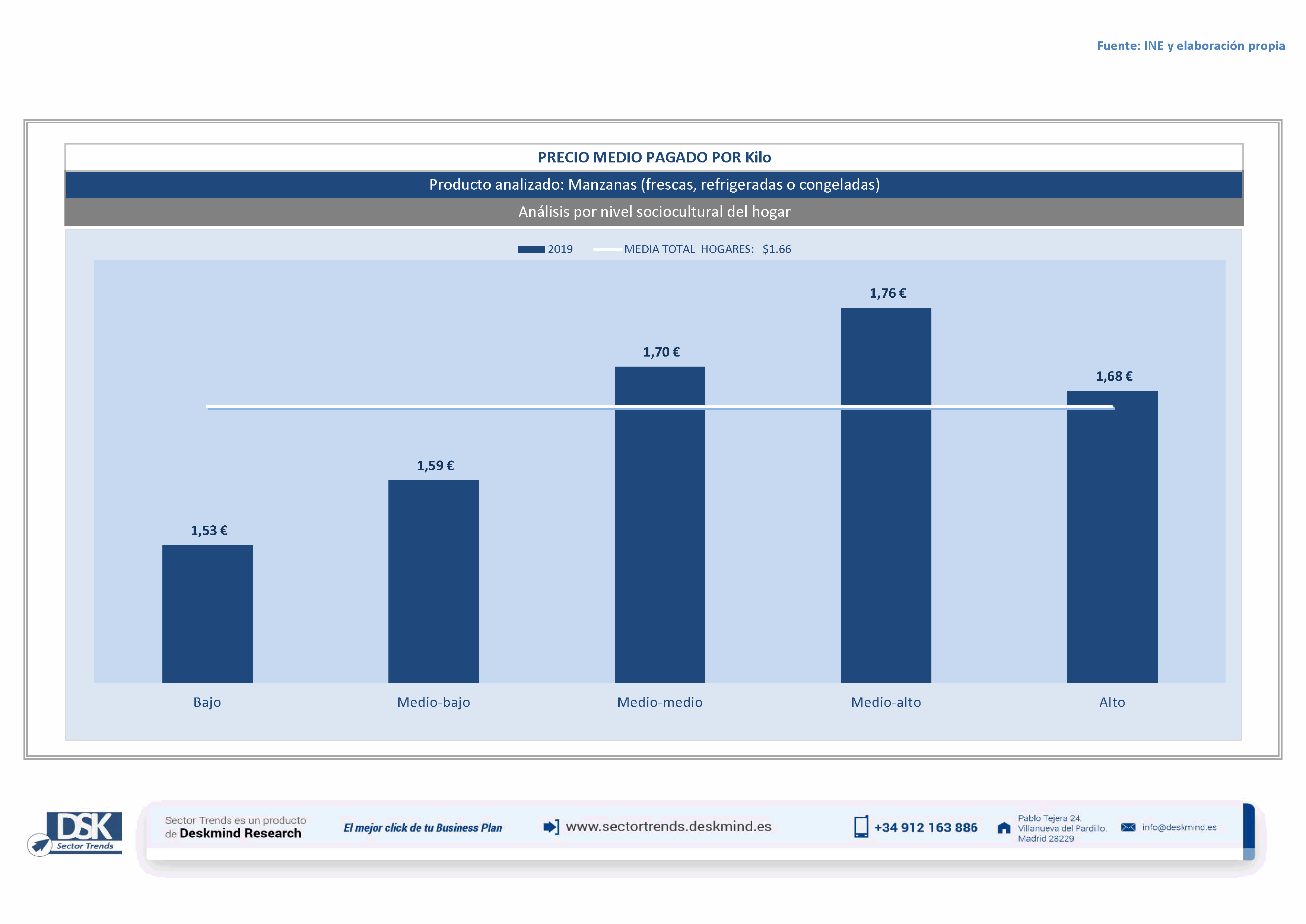 Infografía precio medio por tipo hogar de Manzanas (frescas, refrigeradas o congeladas)