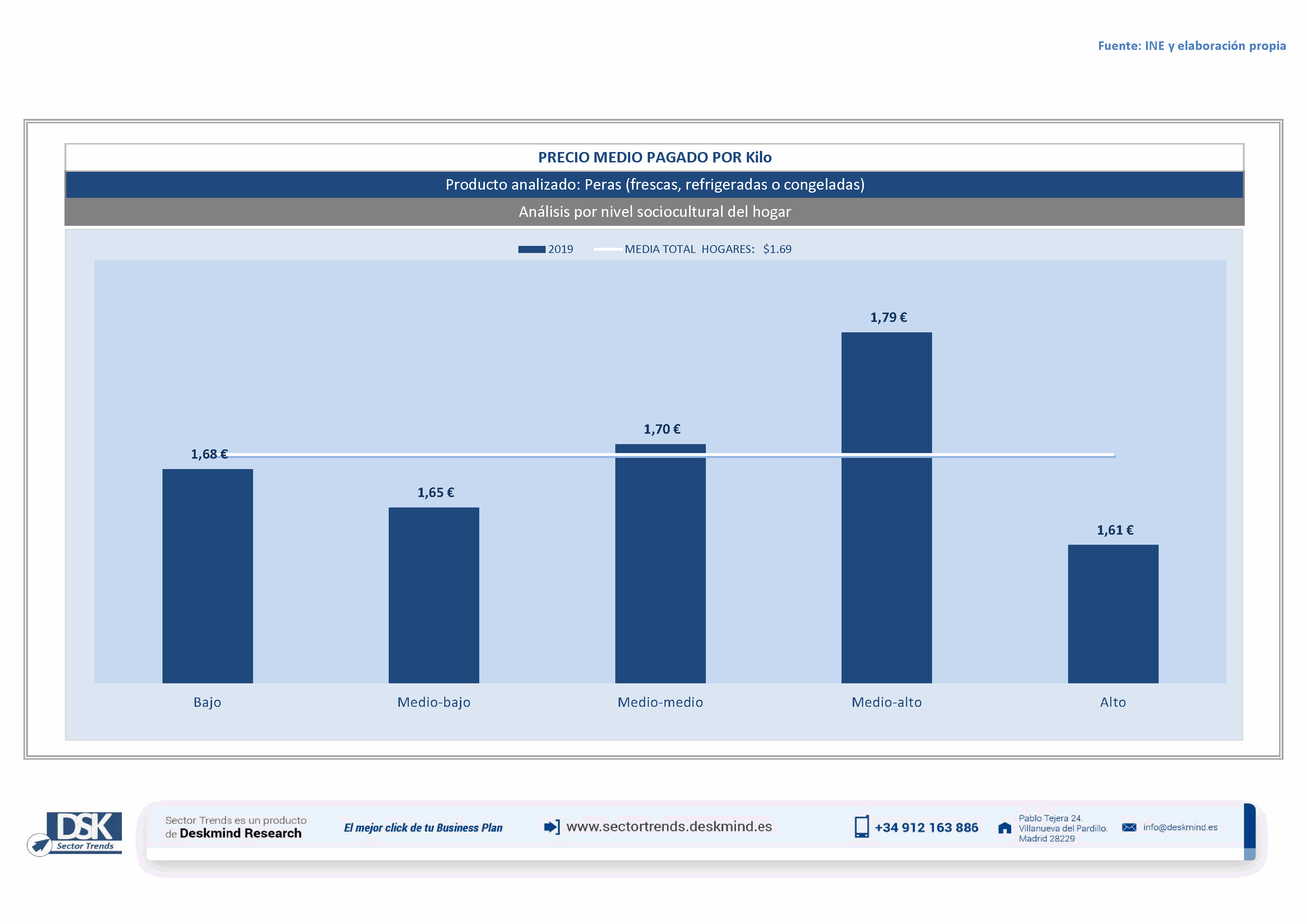 Infografía precio medio por tipo hogar de Peras (frescas, refrigeradas o congeladas)