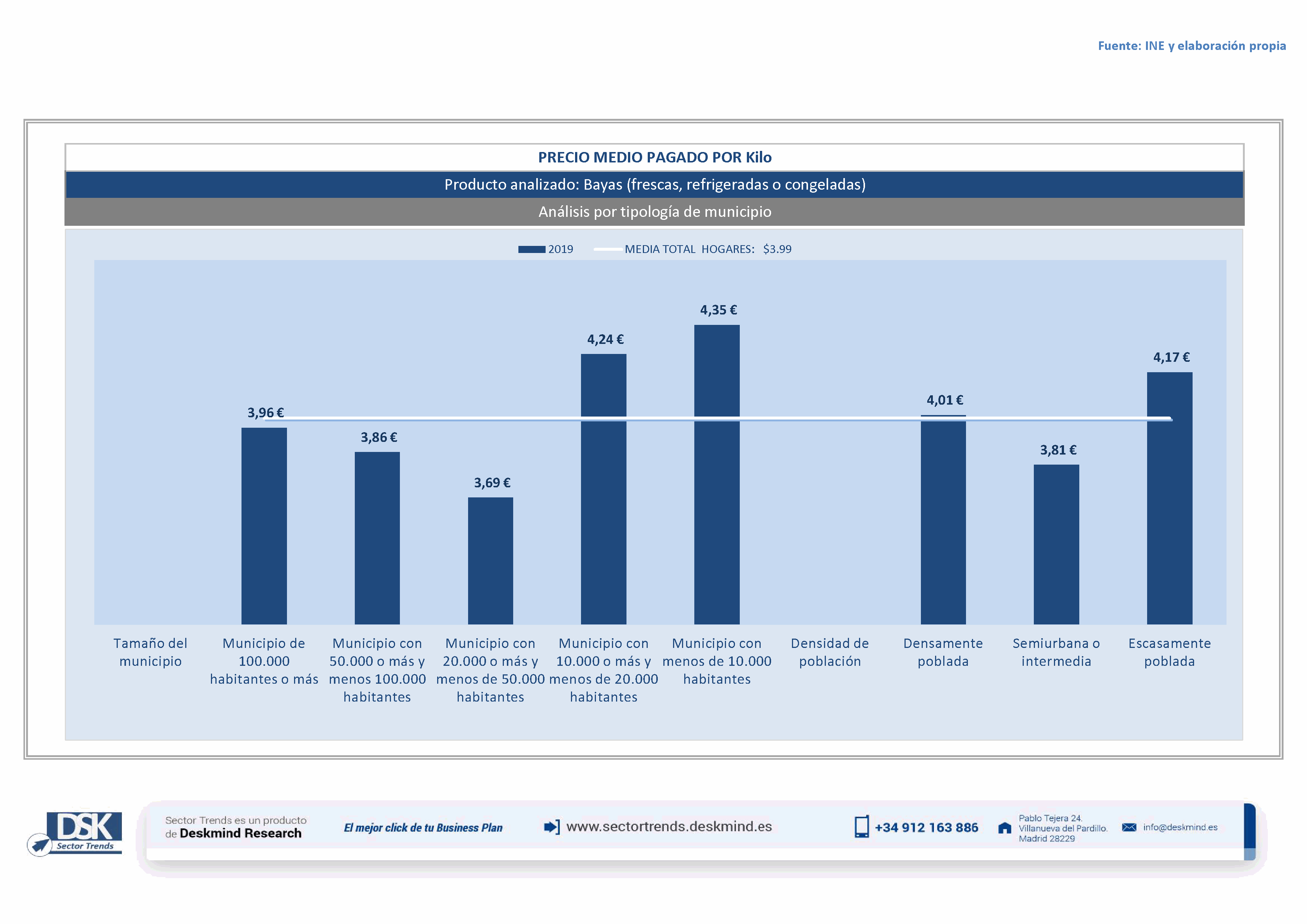 Infografía precio medio por tamaño de hábitat de Bayas (frescas, refrigeradas o congeladas)