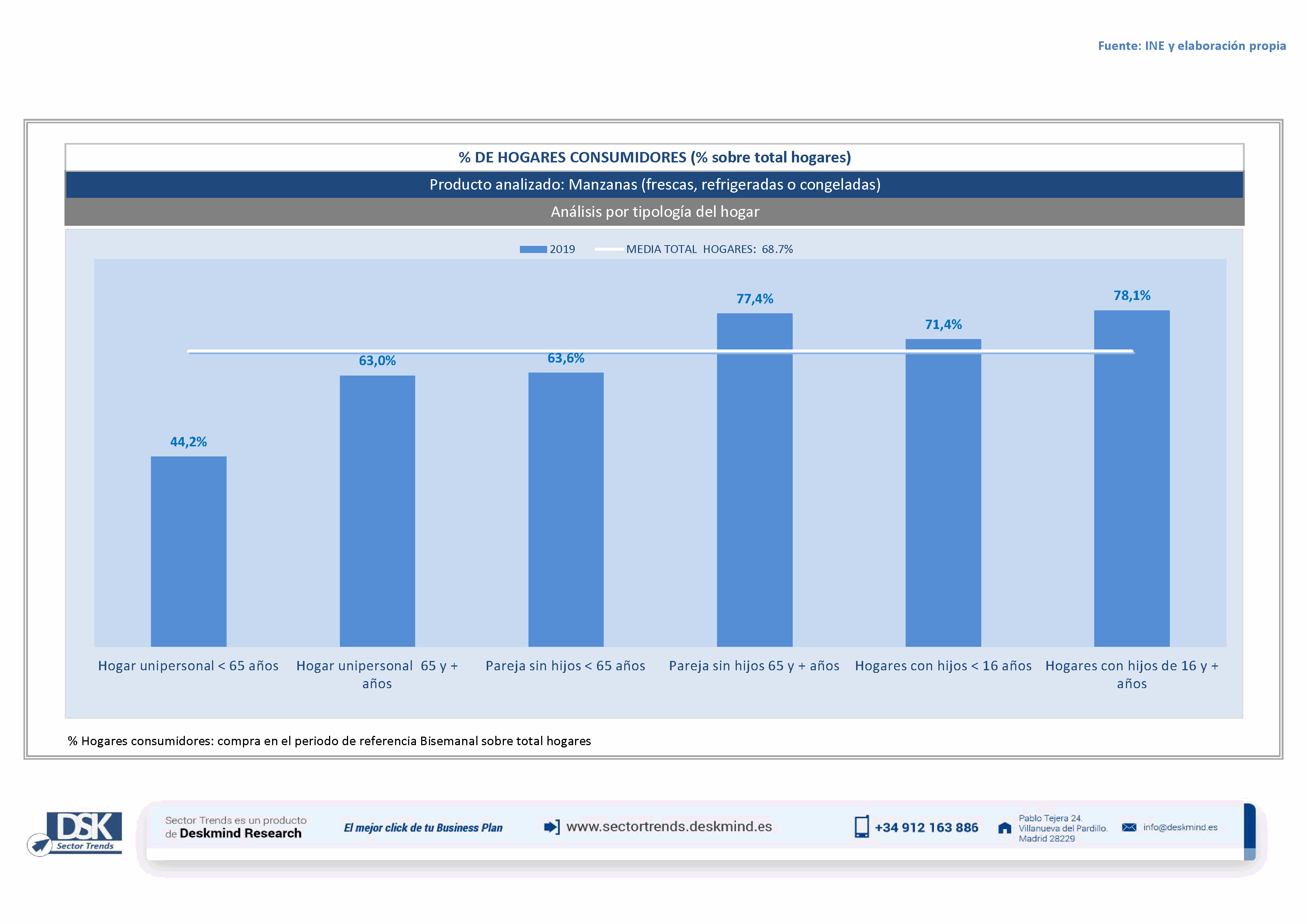 Infografía % hogares por tipo hogar de Manzanas (frescas, refrigeradas o congeladas)