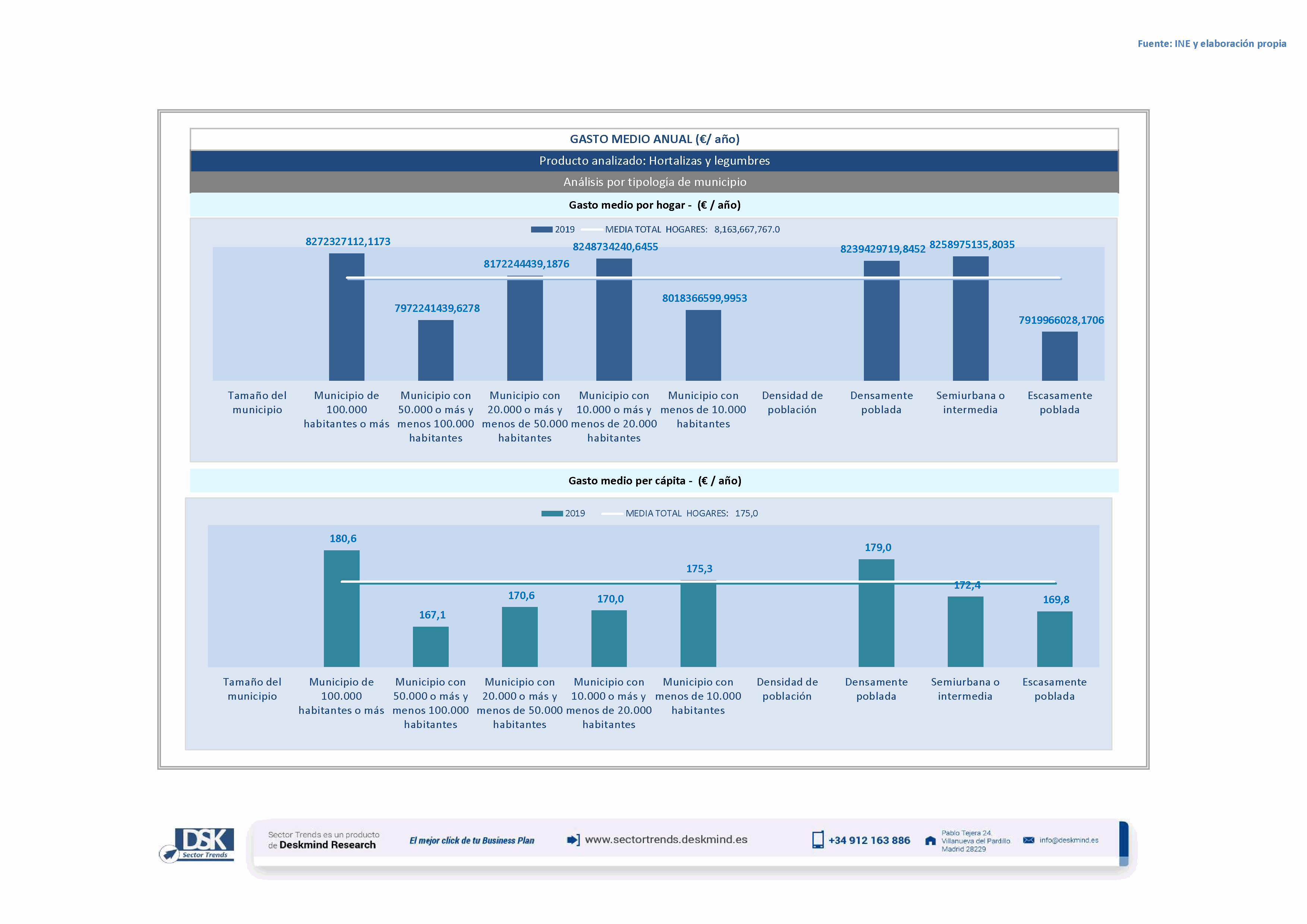 Infografía gasto medio por tamaño de hábitat de Análisis Total Sector Hortalizas y legumbres