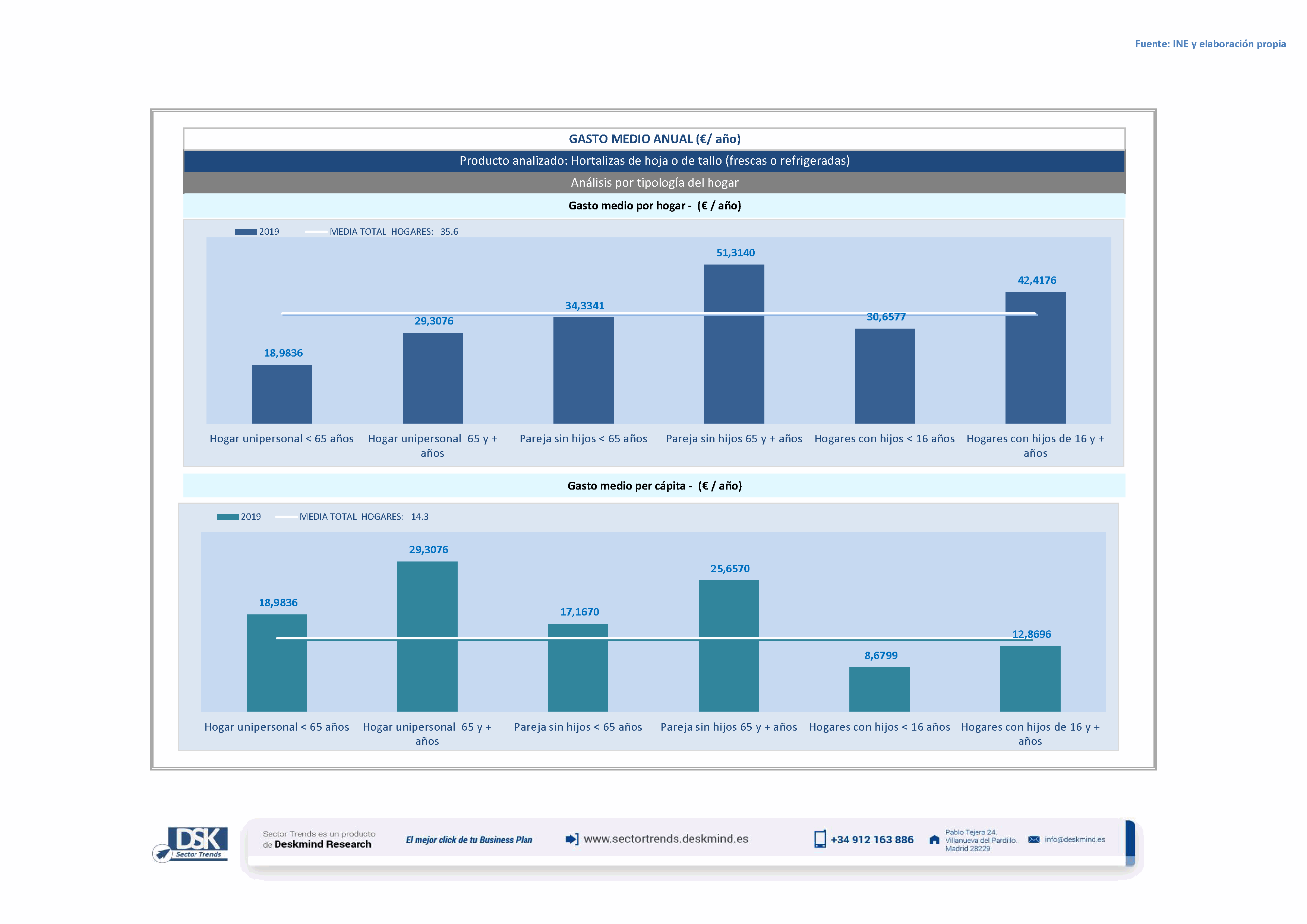 Infografía gasto medio por tipo hogar de Hortalizas de hoja o de tallo (frescas o refrigeradas)