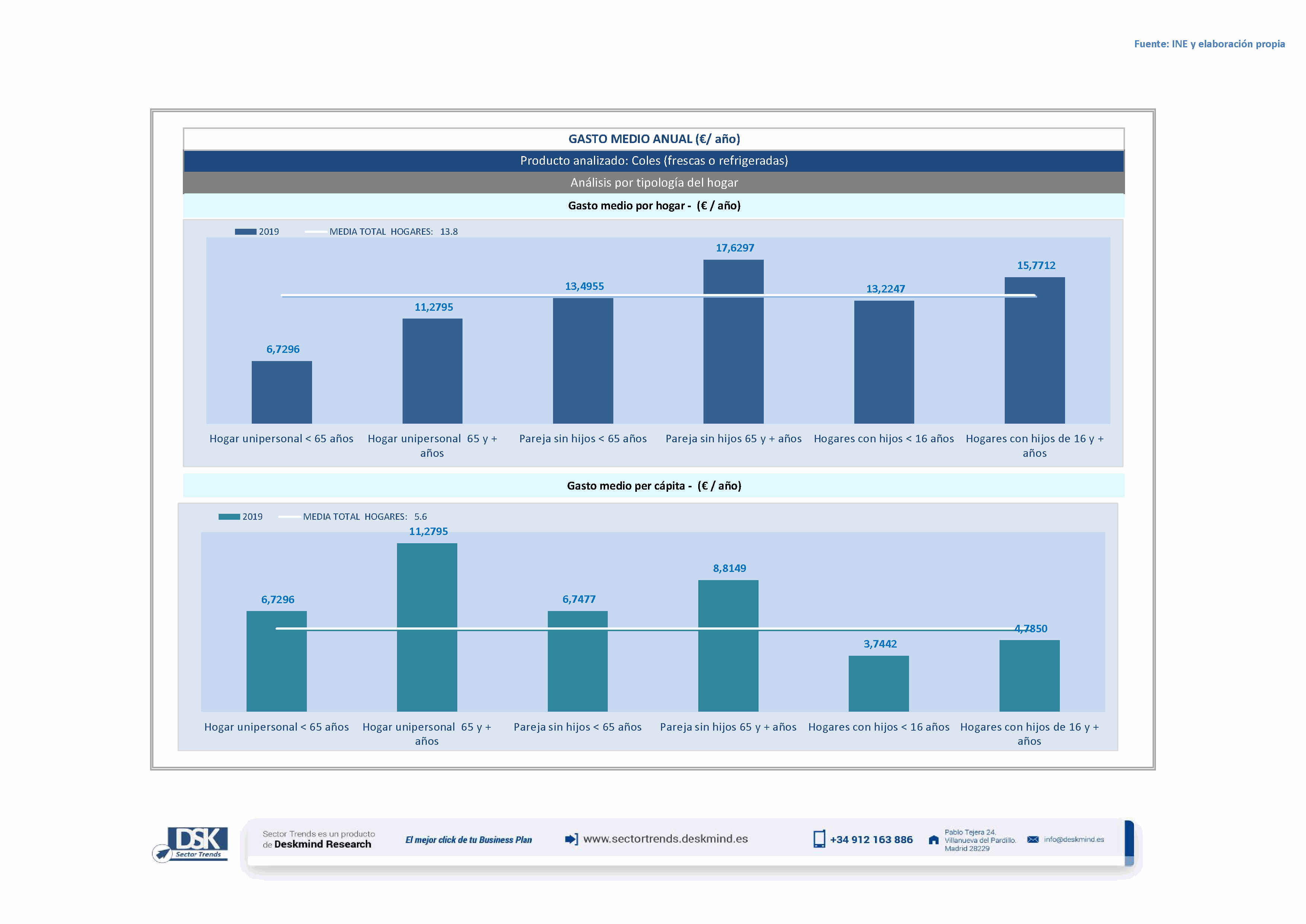 Infografía gasto medio por tipo hogar de Coles (frescas o refrigeradas)