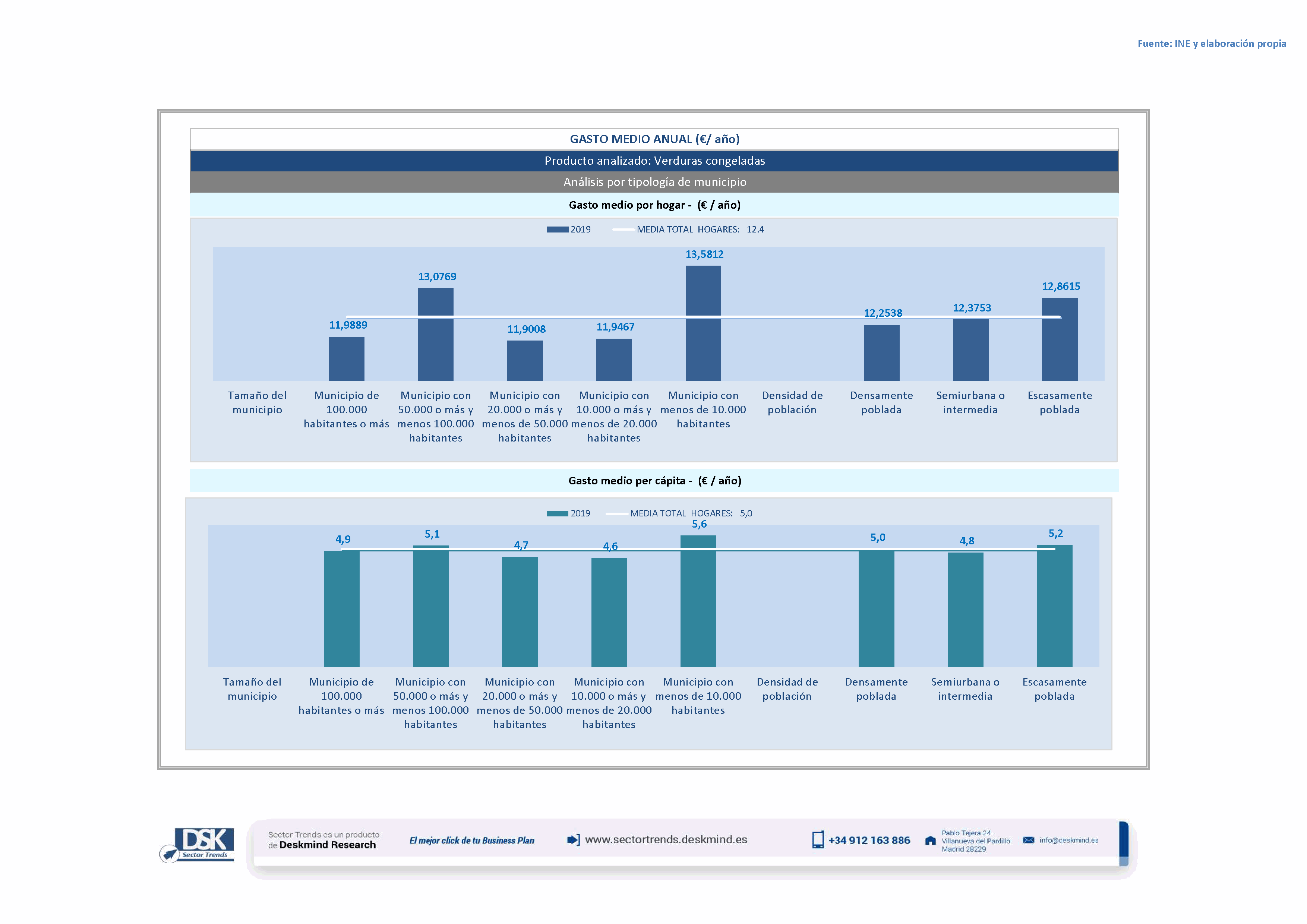 Infografía gasto medio por tamaño de hábitat de Verduras congeladas