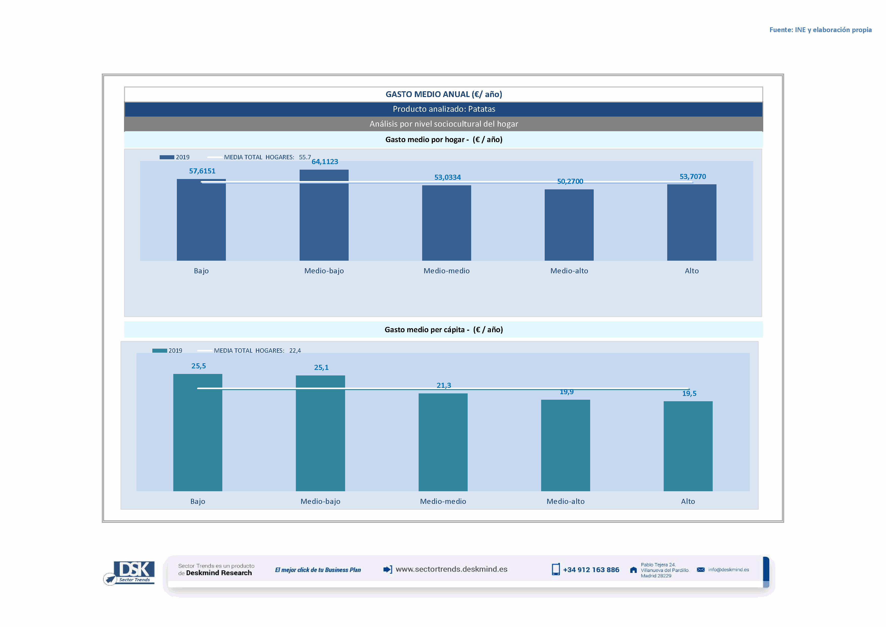 Infografía gasto medio por tamaño de hábitat de Patatas