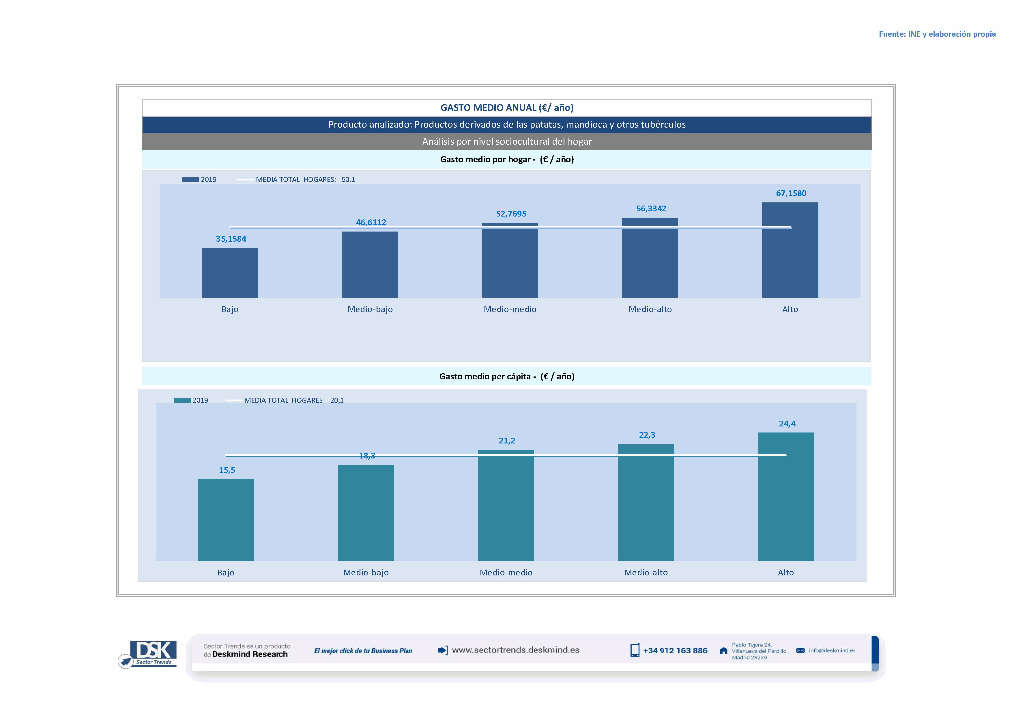 Infografía gasto medio por tamaño de hábitat de Productos derivados de las patatas, mandioca y otros tubérculos