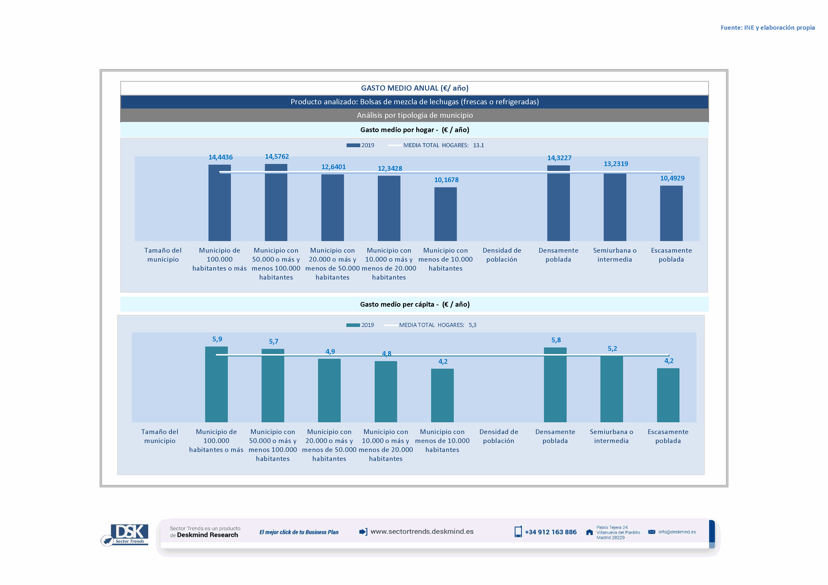 Infografía gasto medio por tamaño de hábitat de Bolsas de mezcla de lechugas (frescas o refrigeradas)