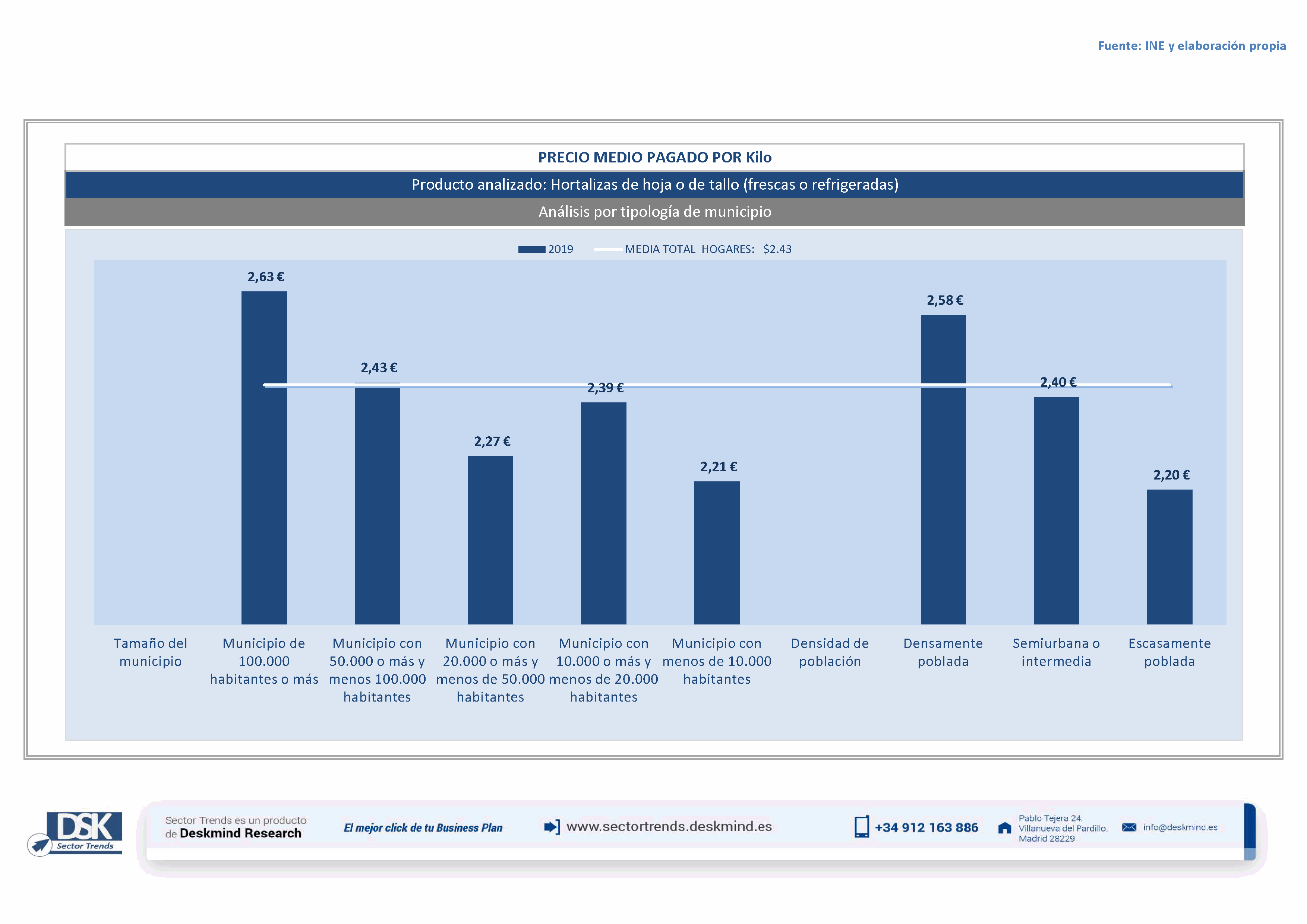 Infografía precio medio por tamaño de hábitat de Hortalizas de hoja o de tallo (frescas o refrigeradas)