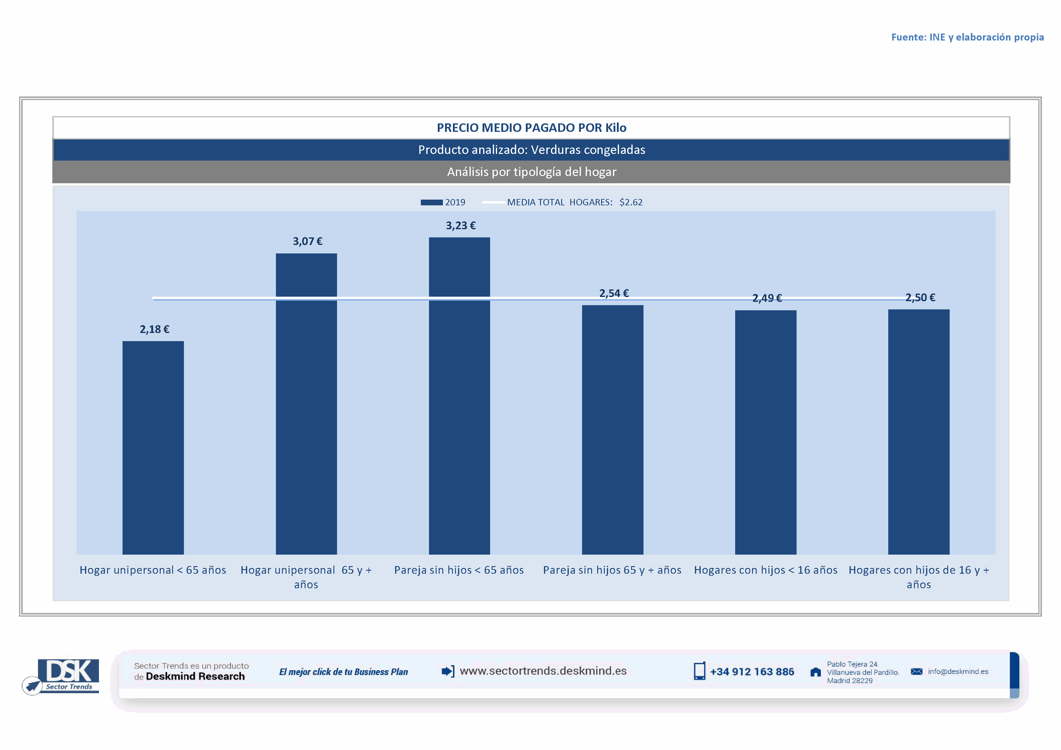 Infografía precio medio por tipo hogar de Verduras congeladas