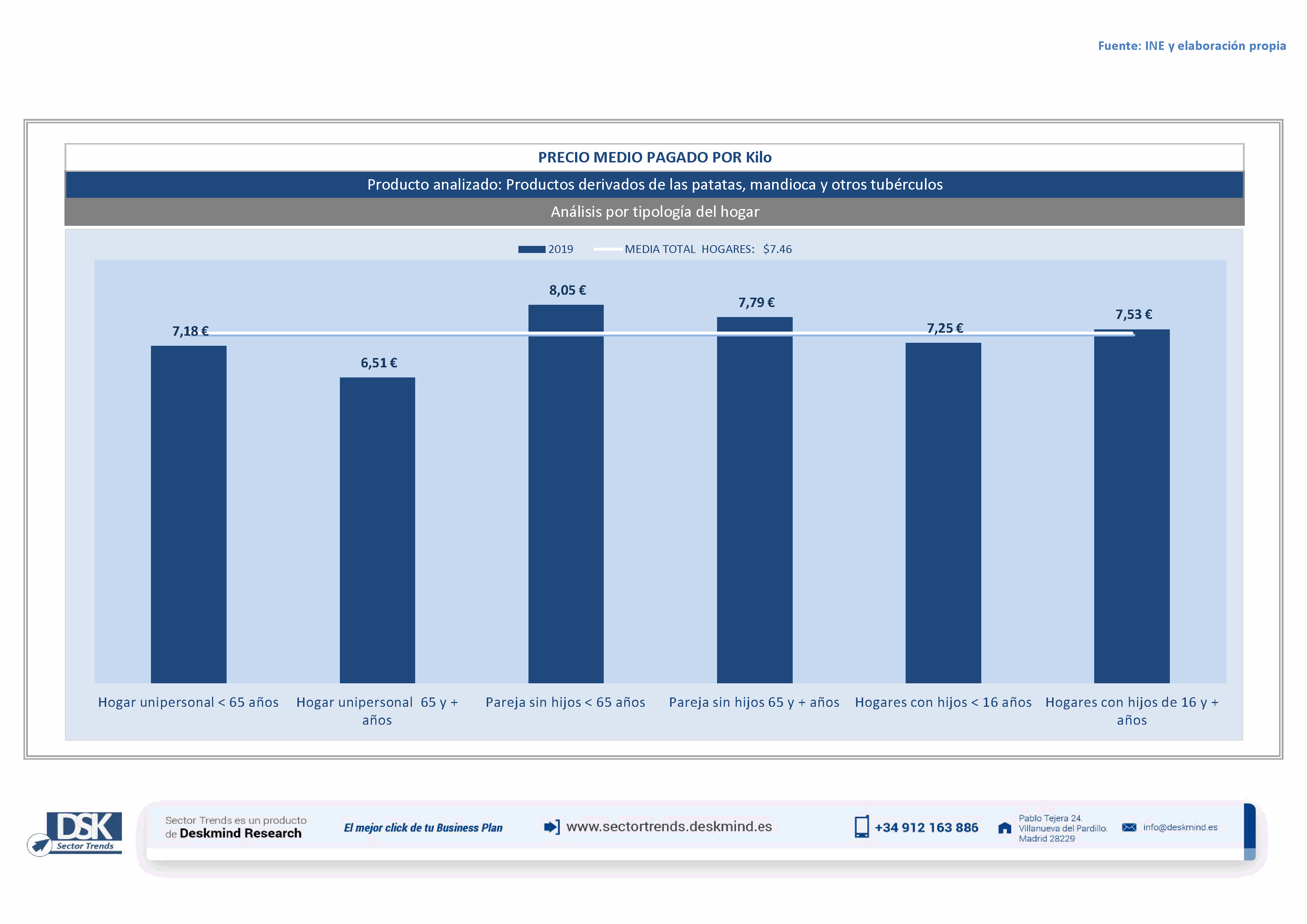 Infografía precio medio por tipo hogar de Patatas