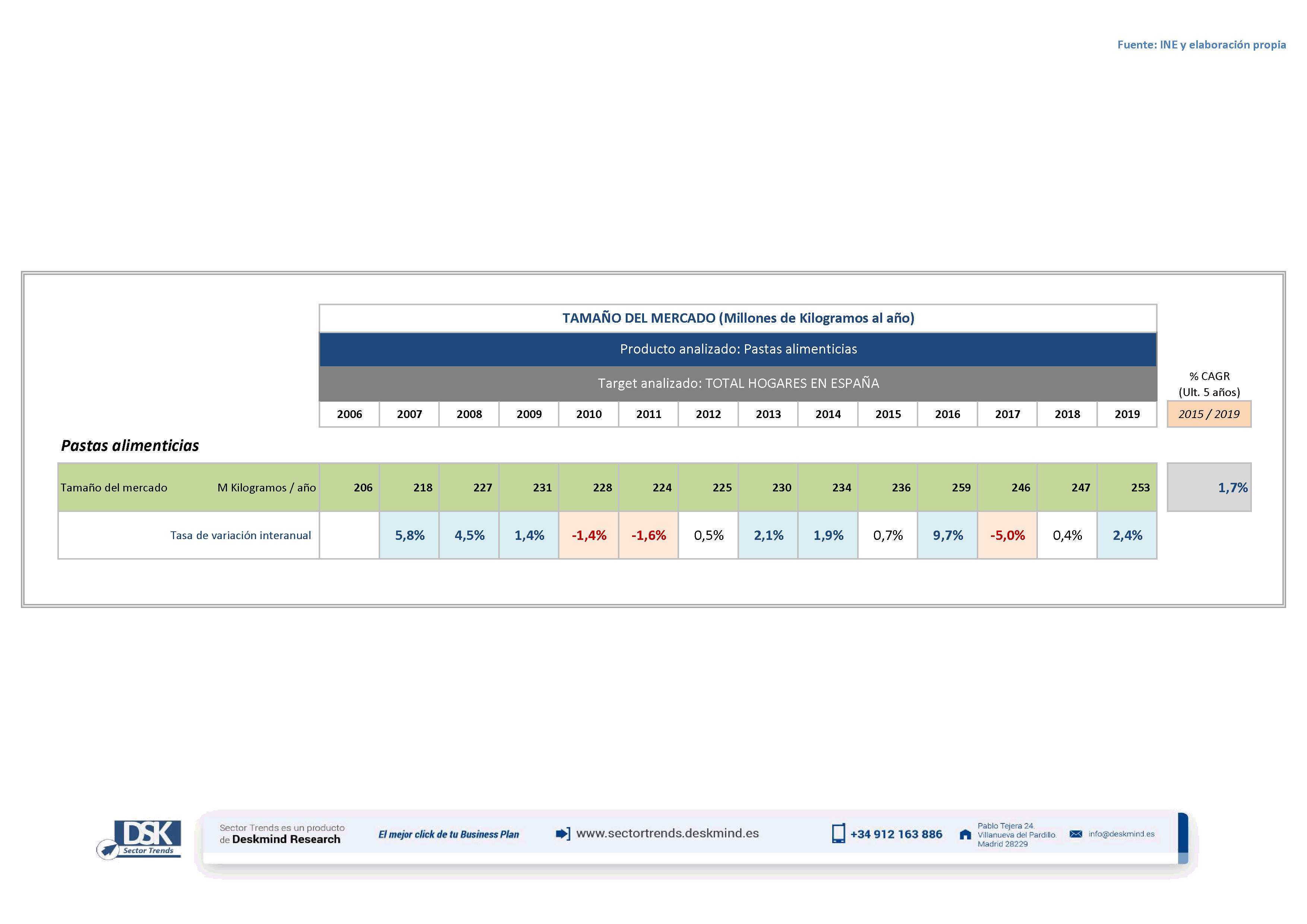 Cuadro estadístico tamaño del mercado de Pastas alimenticias