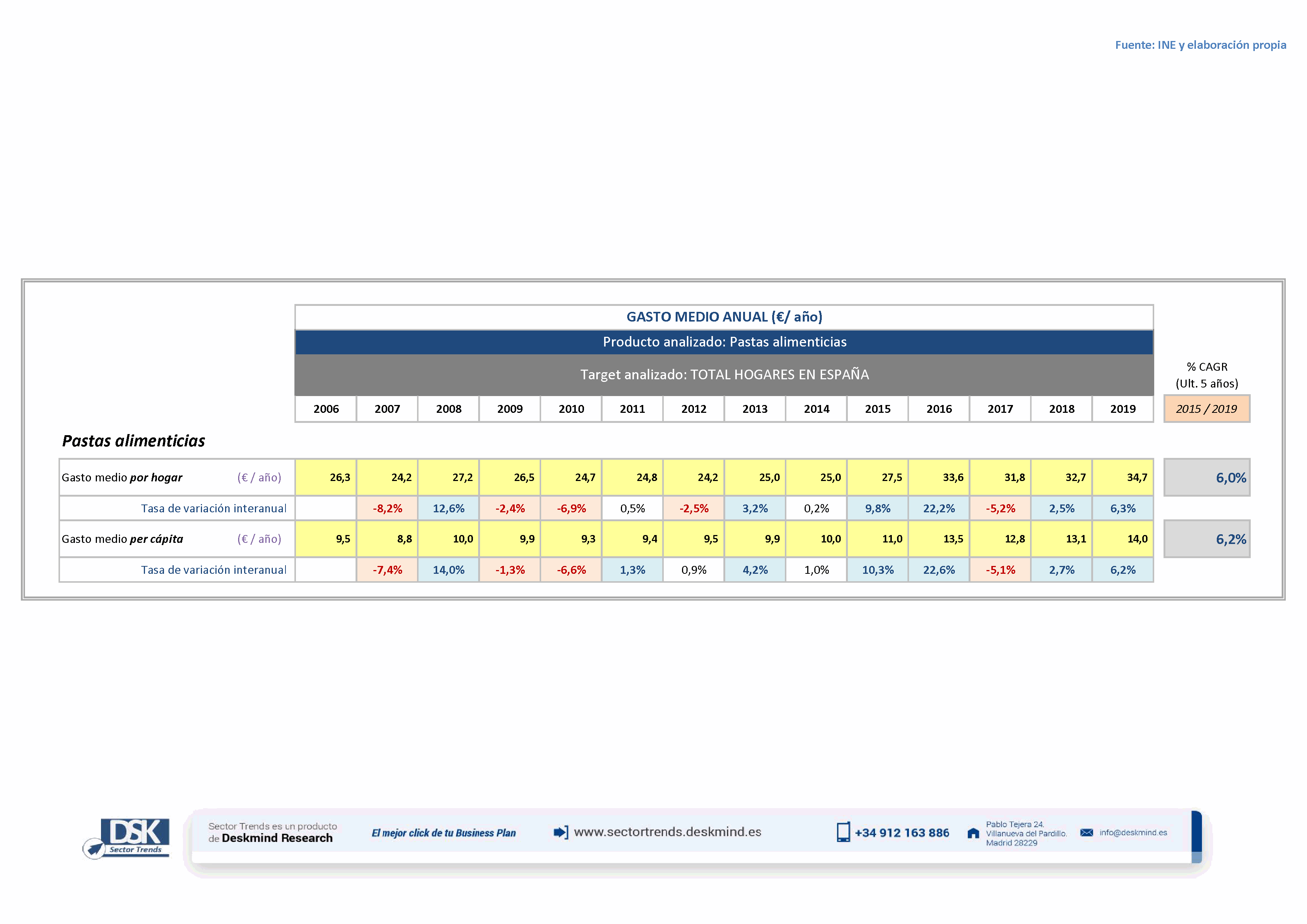 Cuadro estadístico gasto medio de Pastas alimenticias